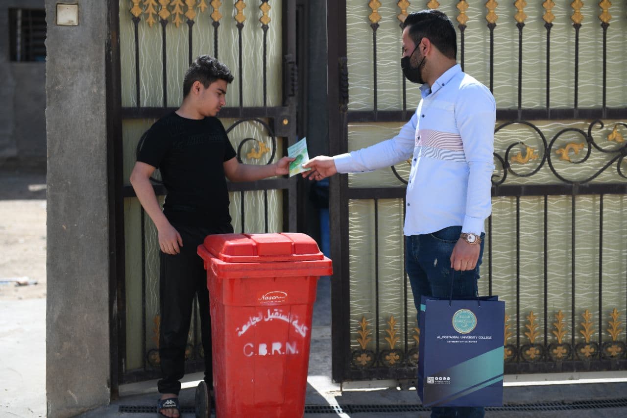 نظمت كلية المستقبل الجامعية بالتعاون مع وحدة المواد الكيميائية والبيولوجية والإشعاعية والنووية حملة توعوية تحت شعار (التخلص الآمن من مخلفات كورونا الطبية) برعاية مباشرة من عميد كلية المستقبل الأستاذ المساعد الدكتور حسن شاكر مجدي. وإشراف الدكتورة زهراء حليم القيم في دعم المؤسسات الصحية والطبية. هدفت الحملة إلى توضيح مخاطر التخلص. ضمن حقيبة الوقاية الطبية لمواجهة فيروس كورونا Covid-19 في الطرق والمستشفيات ، وكذلك للمرضى الموجودين في الحجر الصحي المنزلي ، وتوعية المواطن بخطر إلقاء الكمامات والقفازات والمخلفات الطبية.