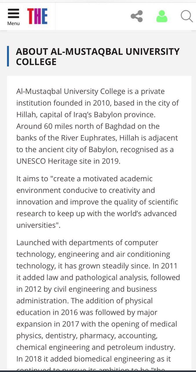 كلية المستقبل الجامعة .. تتربع في المرتبة الأولى على الجامعات و الكليات الاهلية في نتائج تصنيف التايمز للتنمية المستدامة لعام 2022