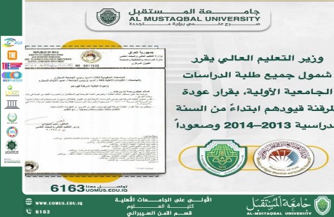 أعلنت وزارة التعليم العالي والبحث العلمي عن صدور قرار وزاري يقضي بشمول جميع الطل...