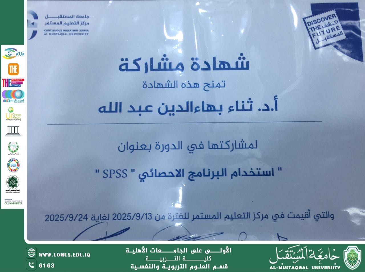 _ اعداد الأستاذ الدكتور عبد السلام جودت جاسم (رئيس قسم العلوم التربوية والنفسية)