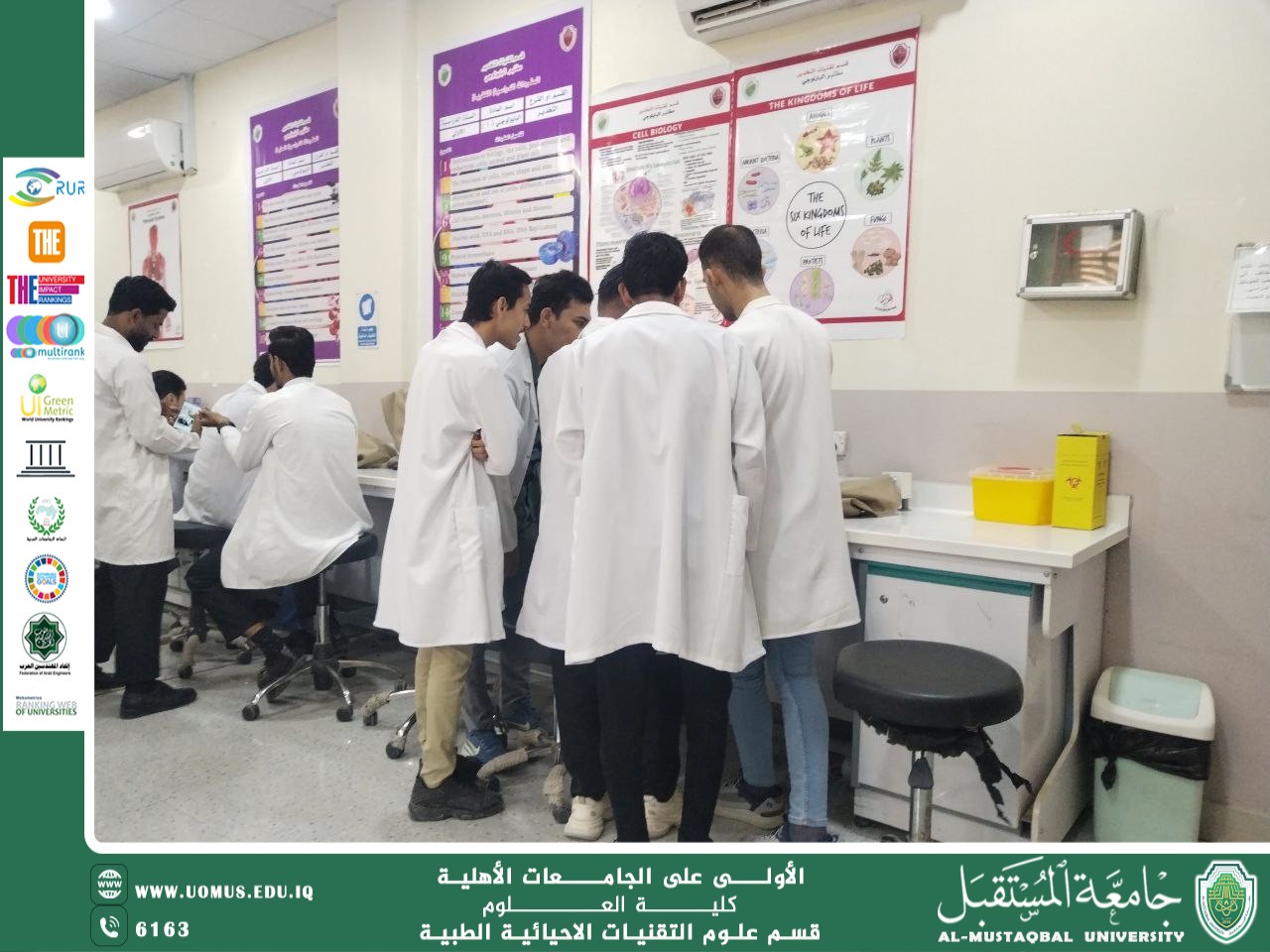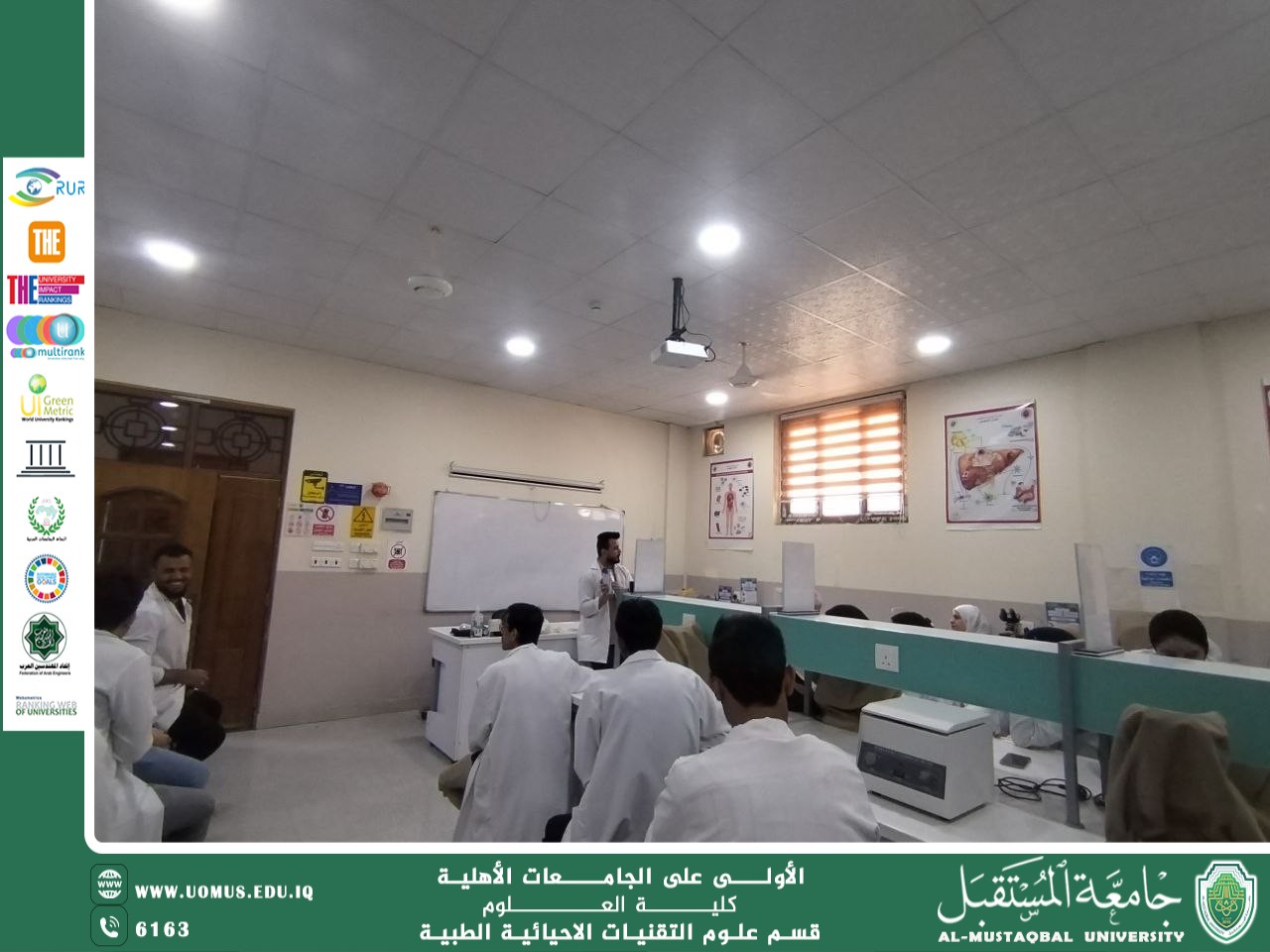 On Thursday, October 9, 2025, Dr. Mohammed Raheer Naji delivered a practical lecture in Industrial Microbiology for students of the Department of Medical Biotechnology – College of Science, from 8:30 to 10:30 a.m., for Groups A and B.