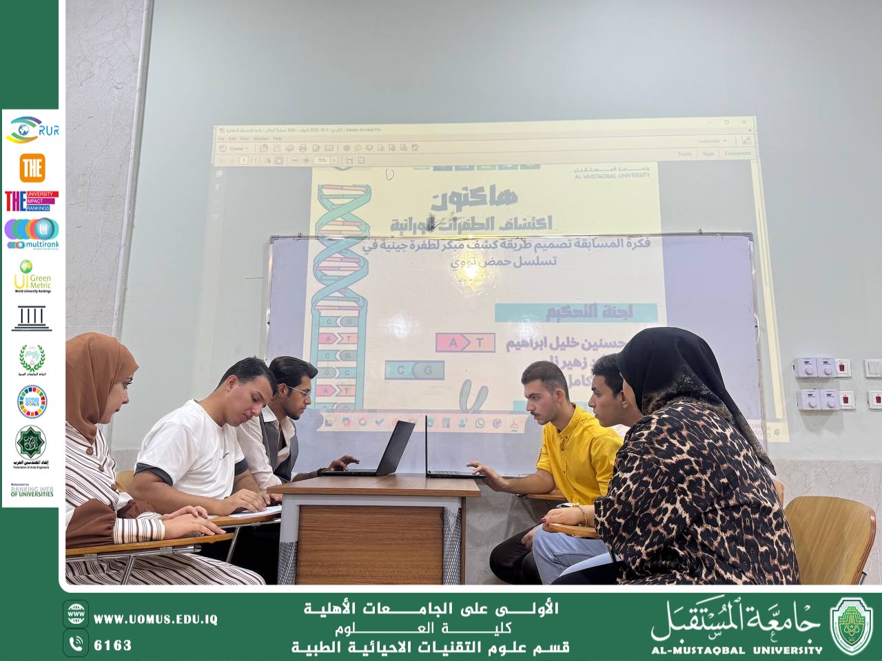The Department of Medical Biotechnology – College of Science organized a scientific Hackathon titled “Genetic Mutation Detection”, with the participation of second- and third-year students, as part of an educational initiative aimed at enhancing students’ research and analytical skills in modern genetic technologies.