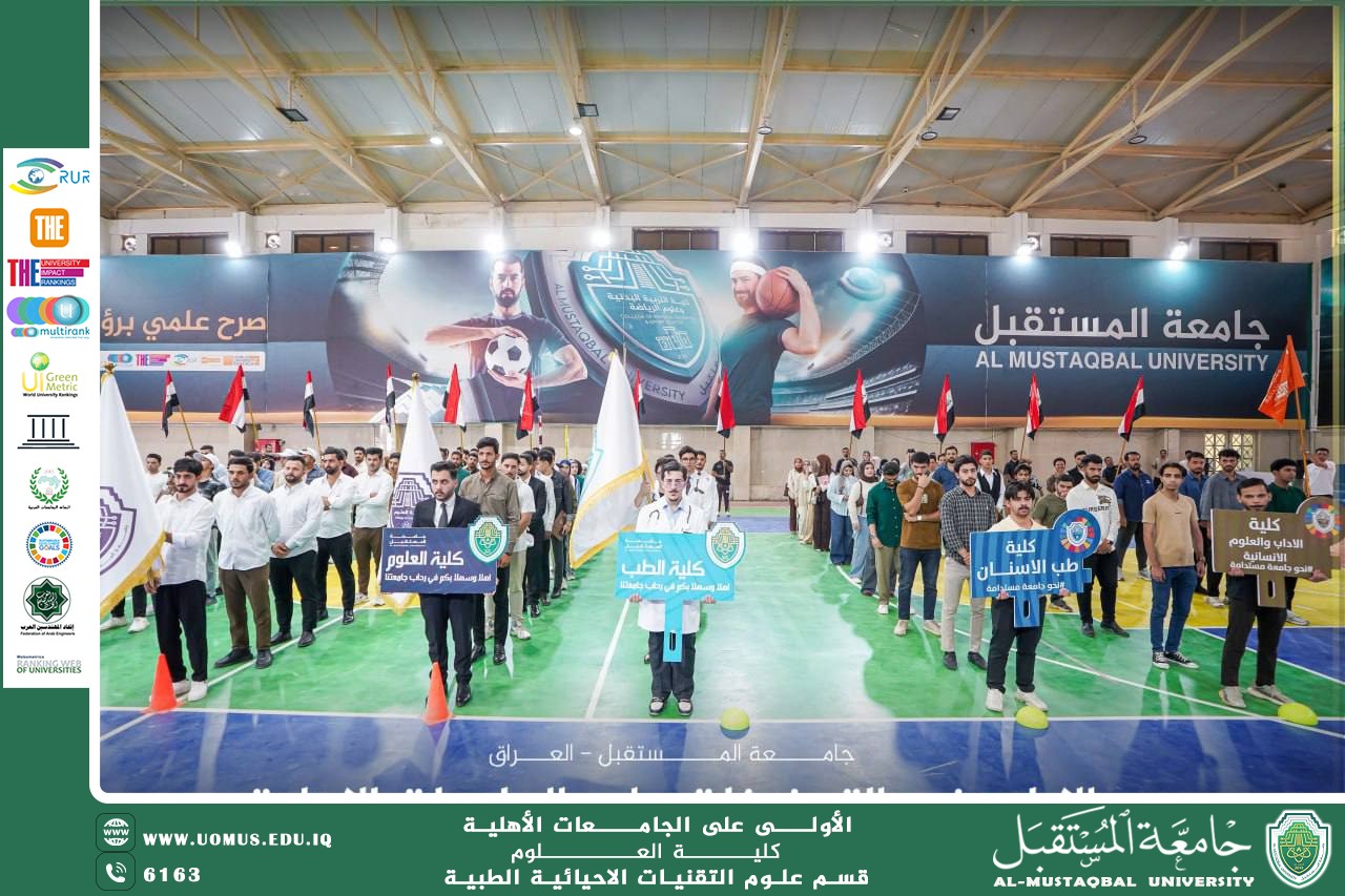 The celebration took place on the university campus in the presence of the President of Al-Mustaqbal University, a number of college deans, faculty members, administrative staff, and students. The event reflected the spirit of unity and patriotism shared by all members of the university community.