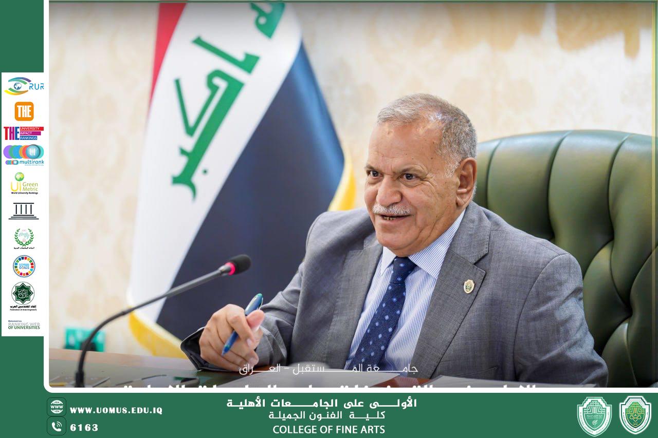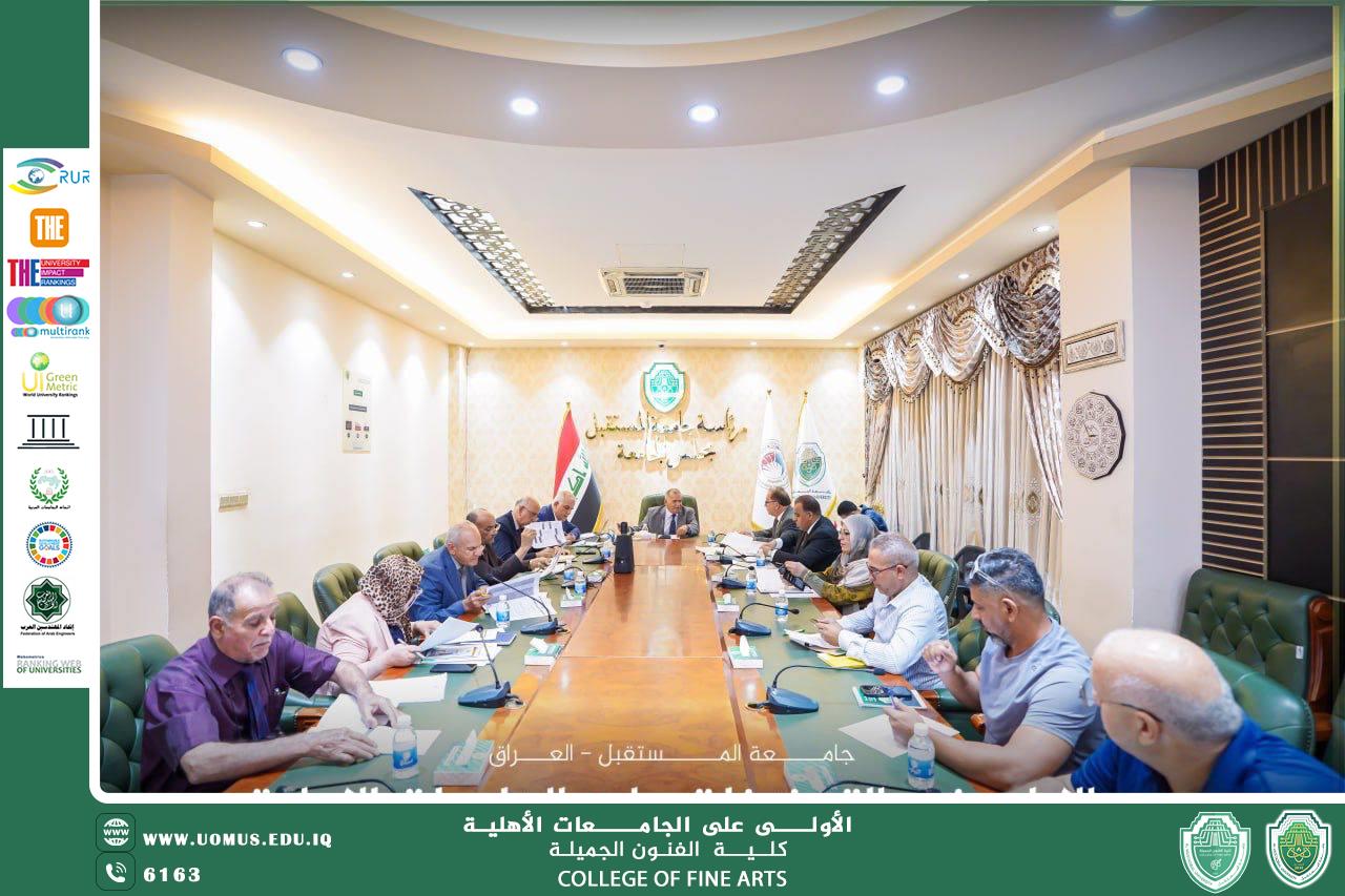 The meeting was chaired by the University President, Prof. Dr. Hassan Shakir Majdi, in the presence of the Administrative Assistant, Prof. Dr. Munther Fadel, the Director of Scientific and Academic Supervision, Prof. Muzafar Sadiq Al-Zuheiri, along with several professors and concerned officials.