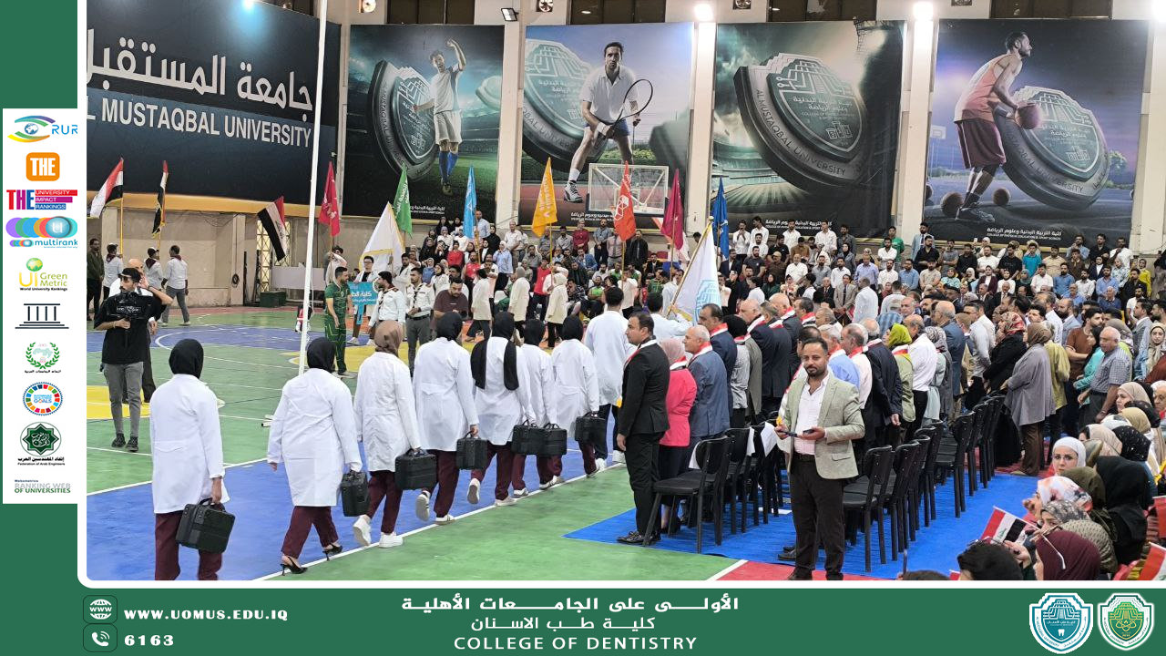 On the morning of Wednesday, October 8, 2025, the College of Dentistry at the University of Al-Mustaqbal participated in the sports parade organized by the university on the occasion of Iraq’s National Week, in the presence of the University President, Vice Presidents, Deans of Colleges, faculty members, and staff.