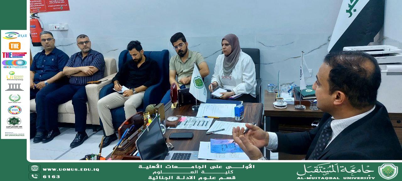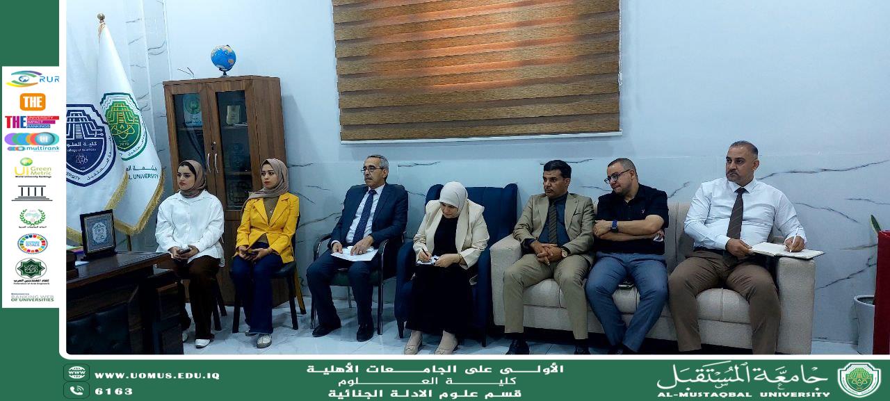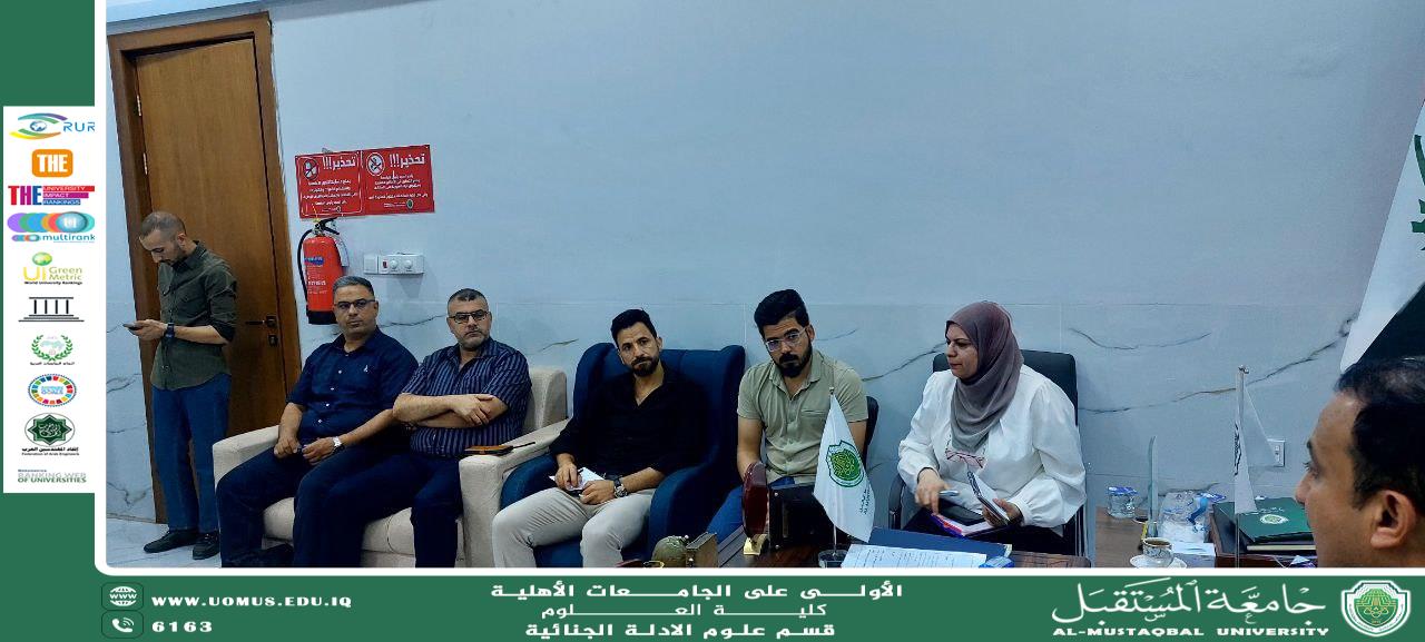 Under the patronage of the respected President of Al-Mustaqbal University, Prof. Dr. Hassan Shaker Majdi, the College of Science held an extensive meeting attended by the Dean, Asst. Prof. Dr. Furat Hamza Al-Sultani, along with the Heads and Rapporteurs of the departments.