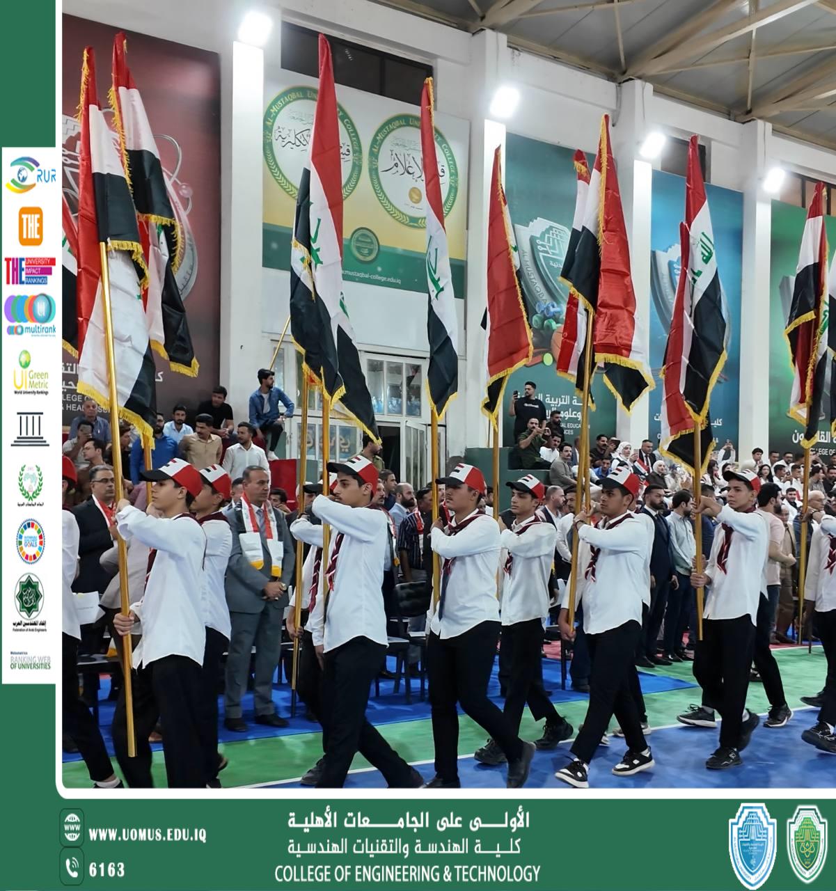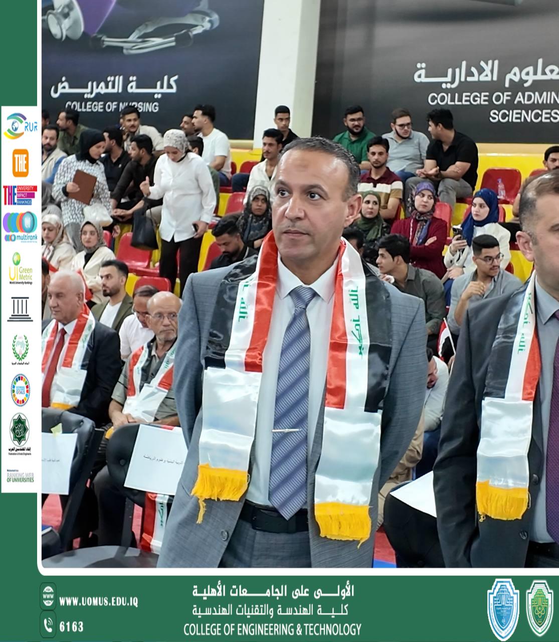 Under the patronage of Prof. Dr. Hasan Shakir Majdi, President of Al-Mustaqbal University, and with the supervision and presence of the Dean of the College of Engineering Technologies, Asst. Prof. Dr. Azhar Mohsen Abdul, the College actively participated in the university’s celebration of Iraq’s National Day, alongside several colleges and students.
