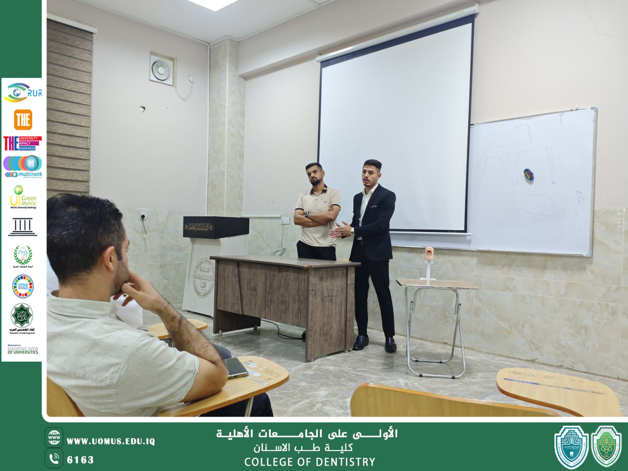 In his remarks, Professor Dr. Muzafar Sadiq Al-Zuheiri commended the efforts and innovations of the students, affirming the University’s support for them in continuing their scientific and creative journey. Dean Professor Dr. Athraa Yahya Al-Hijjazi also expressed her gratitude to the attendees and supervising committees, praising the students who embodied the spirit of innovation in the field of dentistry.
