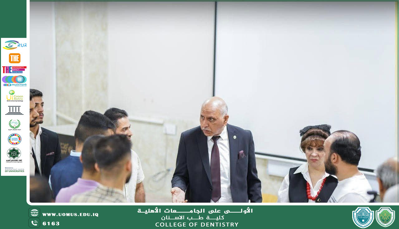 The event was attended by Professor Dr. Muzafar Sadiq Al-Zuheiri, Director of Scientific and Academic Supervision at the University; Dr. Sameer Badravi, Head of Cultural Relations; and Professor Dr. Tareq Jawad Kazem, Director of the Scientific Affairs Department, under the direct supervision of the Dean of the College, Professor Dr. Athraa Yahya Al-Hijjazi.