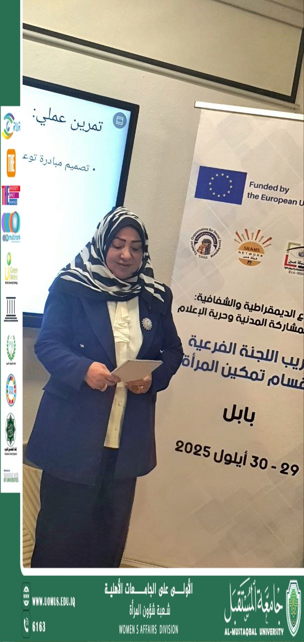Under the patronage of the Dean of the College of Engineering and Engineering Technologies (Women’s Affairs Unit), and in cooperation with the Women’s Affairs Division at Al-Mustaqbal University, and under the supervision of Prof. Dr. Sahira Qahtan Abduljabbar, Head of the Women’s Affairs Division, an awareness seminar dedicated to women was held on September 9, 2025, entitled: