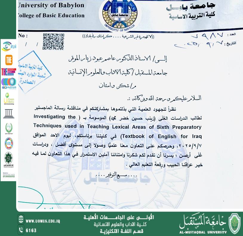 Asst. Prof. Dr. Maitham Abdul Khader Jabbar, Assistant Dean of the College of Arts and Hum...