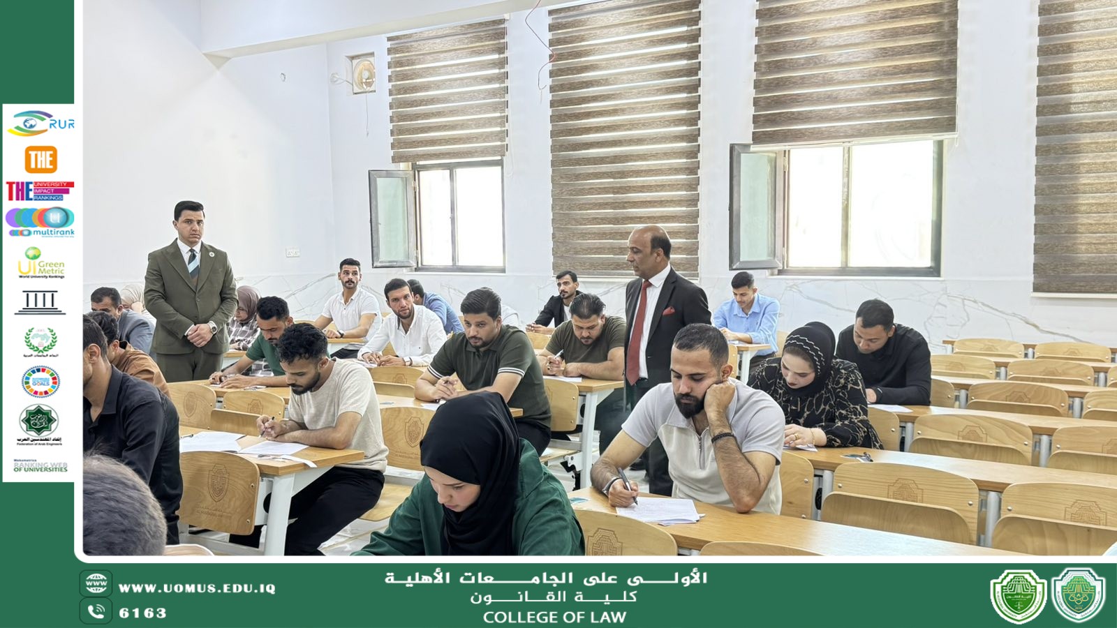 ge of Law – Al-Mustaqbal University, to observe the mock exams for assessment subjects held for second-stage students. This initiative comes as part of the college’s ongoing preparations for the ministerial exams mandated by the Ministry of Higher Education and Scientific Research.