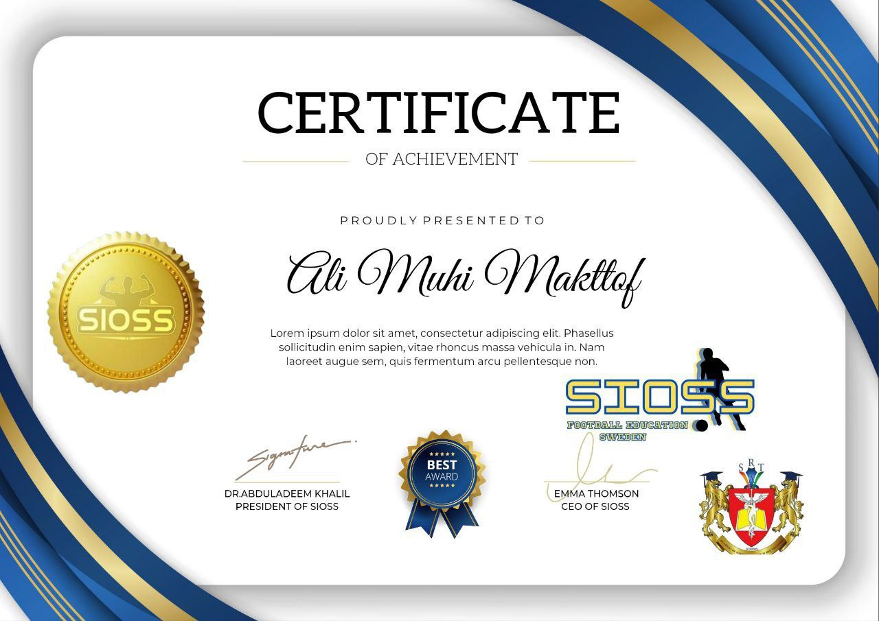 The instructor participated in the Department of Physical Education and Sports Science - Asst. L. Ali Muhi Makttoof in the course for the development of football coaches and specialists in the College of Physical Education and Special Sports Sciences in modern exercises and ways of dealing with coaches with players and determining the types of coaches in terms of work, planning and passion
