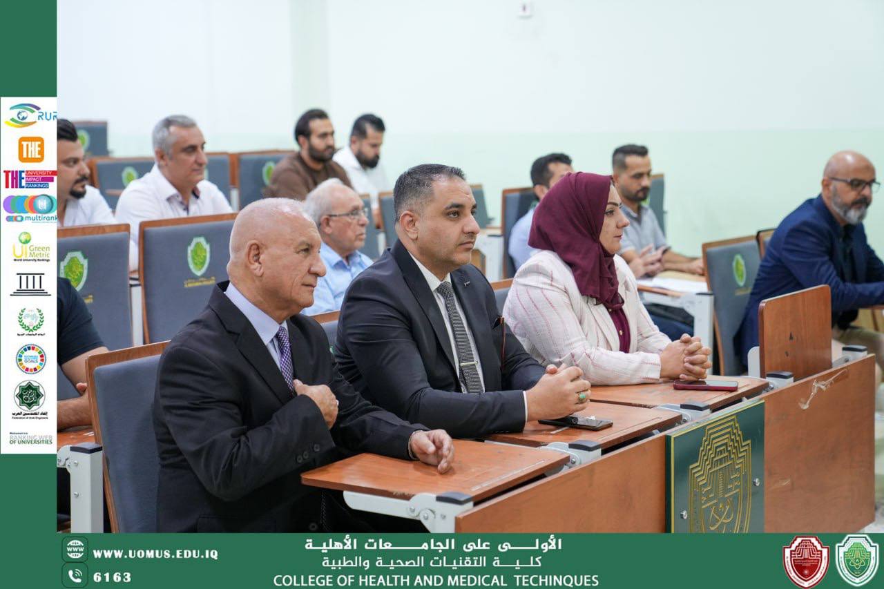 On the morning of Saturday, September 27, 2025, the Department of Radiologic Techniques at the College of Health and Medical Technologies – Al-Mustaqbal University organized a workshop on the mechanism of implementing program accreditation standards. The workshop was attended by the Dean of the College, Assistant Professor Dr. Zahraa Haleem Al-Qaeem, the Associate Dean for Scientific Affairs, Assistant Professor Dr. Ahmed Adnan Al-Khafaji, the Head of the Department of Radiologic Techniques, Professor Dr. Raad Shaker Al-Naili, as well as faculty members and students of the department.