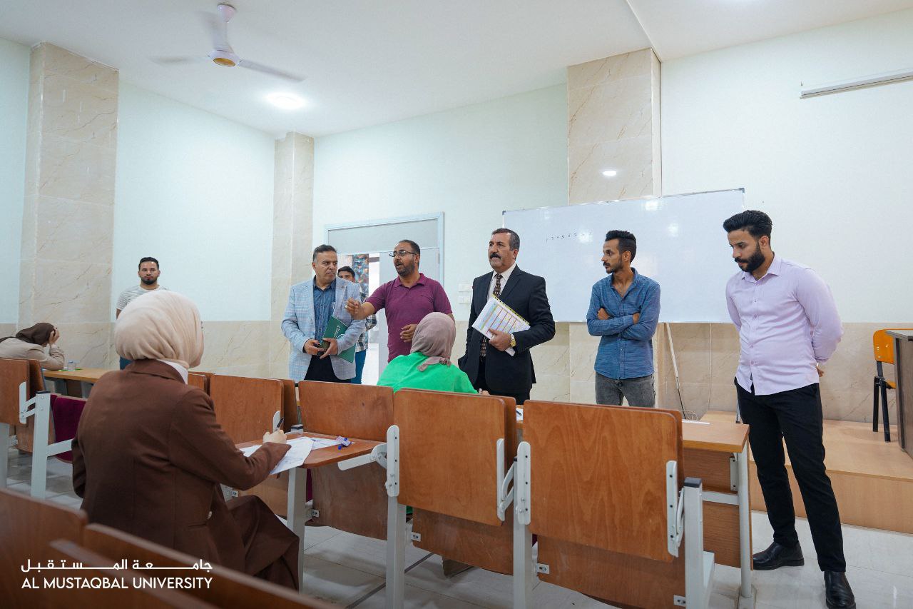 The continuation of the final exams for the first round of the academic year 2022-2023 at Al-Mustaqbal University for today, Thursday, 6/8/2023, under the supervision of the President of the University Prof. Dr. Hassan Shaker Magdi, the assistants, the deans of the colleges , and the examination and ministerial committees
