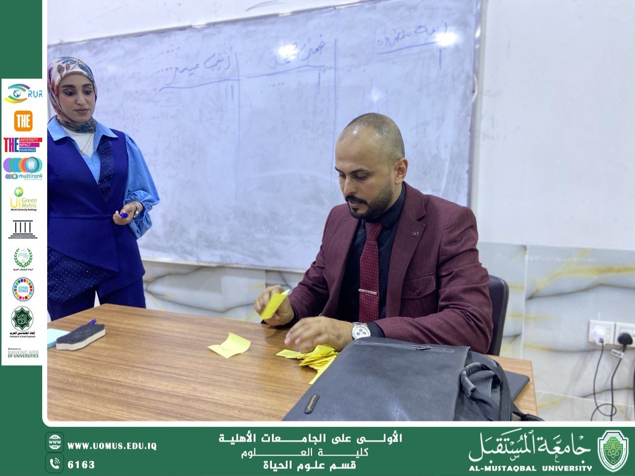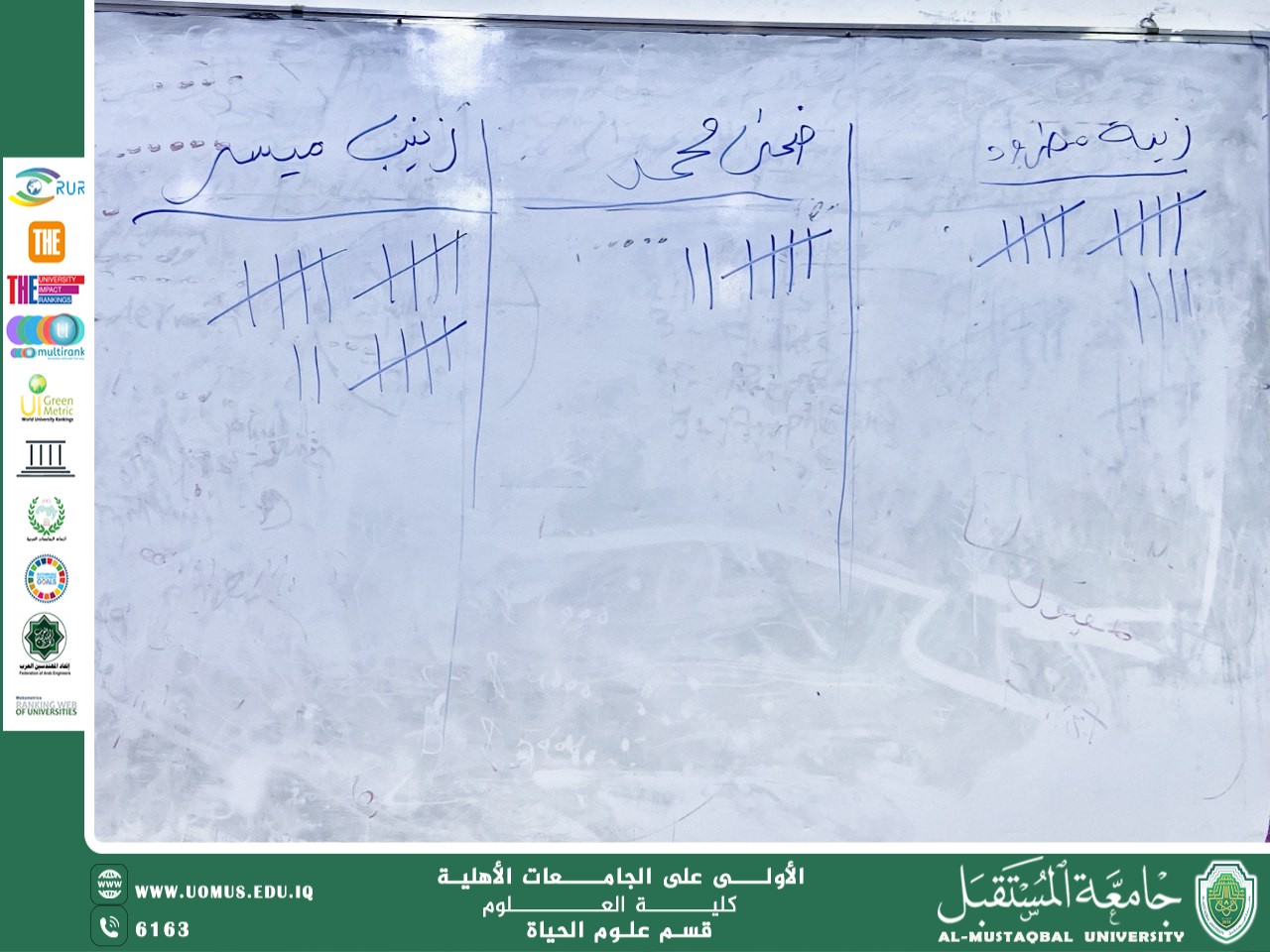 with the direction of the esteemed Dean of the College of Science and with the supervision of the Head of the biology Department (Assistant Professor Jaafar Hamid Jaafar), the student representative elections for the second year of the biology Department were held. The candidates for election were: Duha Muhammad, Zeina Matroud, and Zainab Maysar. Zainab Maysar was selected as the representative of Group A based on the voting results. This is a vital and important process that contributes to enhancing the active participation of students in managing their academic and student affairs and effectively representing their interests. Student representatives play a vital role in facilitating communication between the academic department and students. Student participation in this process was excellent, both in terms of attendance and the fair selection of their representatives. We wish our dear students success and excellence.