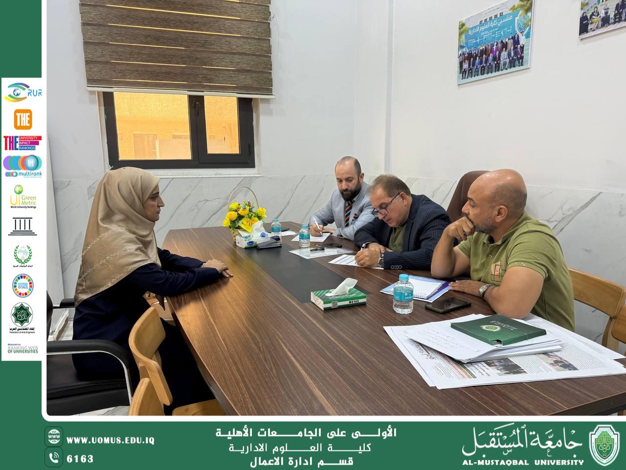Professor Dr. Haider Ali Al-Dulaimi, Dean of the College of Administrative Sciences, chaired the specialized committee responsible for appointing postgraduate degree holders (Ph.D. and Master’s) to the university staff for the academic year 2025–2026.