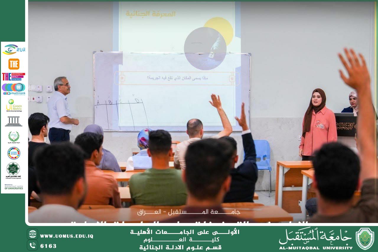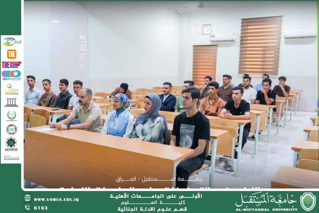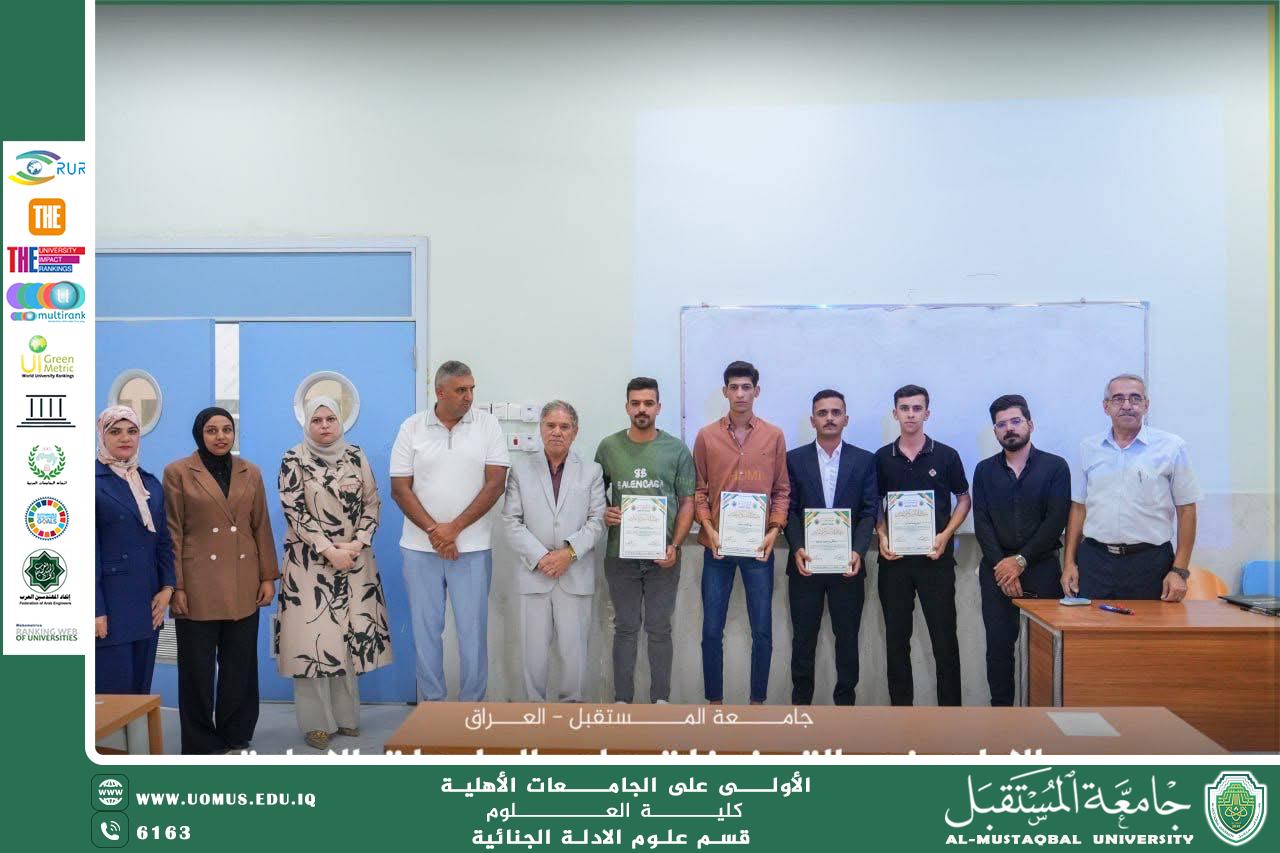 In line with the directives of Al-Mustaqbal University, represented by the University President, Prof. Dr. Hassan Shaker Majdi, to support student creativity and foster research and innovation, the College of Science – Forensic Evidence Department organized the “Forensic Knowledge Hackathon” with the participation of its distinguished students.