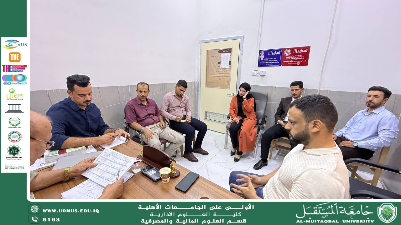 On Saturday, September 20, 2025, the Department of Financial and Banking Sciences at the College of Administrative Sciences held its first meeting for the new academic year 2025–2026, chaired by the Head of the Department and attended by all its members, including faculty and staff.