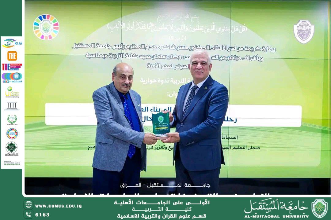 Under the generous patronage of the President of Al-Mustaqbal University, Prof. Dr. Hassan Shaker Jaddi, and with the direct supervision of the Dean of the College of Education, Prof. Dr. Ahmed Rawdan, the College of Education organized a panel discussion on the occasion of International Literacy Day. This global event is celebrated every year to emphasize that education is not a privilege but a fundamental right for every human being, and that every letter taught is a step toward a fairer, more prosperous, and more humane world.