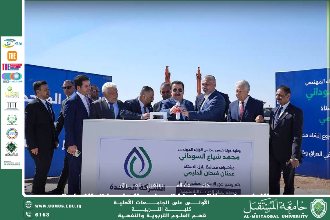 On Monday, September 22, 2025, the President of Al-Mustaqbal University, Professor Hassan Shaker Majdi, participated in the official ceremony announcing Babylon as the Industrial Capital of Iraq. The ceremony was launched by Prime Minister Mohammed Shia' Al-Sudani, in the presence of Babylon Governor Adnan Fayhan Al-Dulaimi, a number of members of Parliament, heads of provincial councils, and advisors.