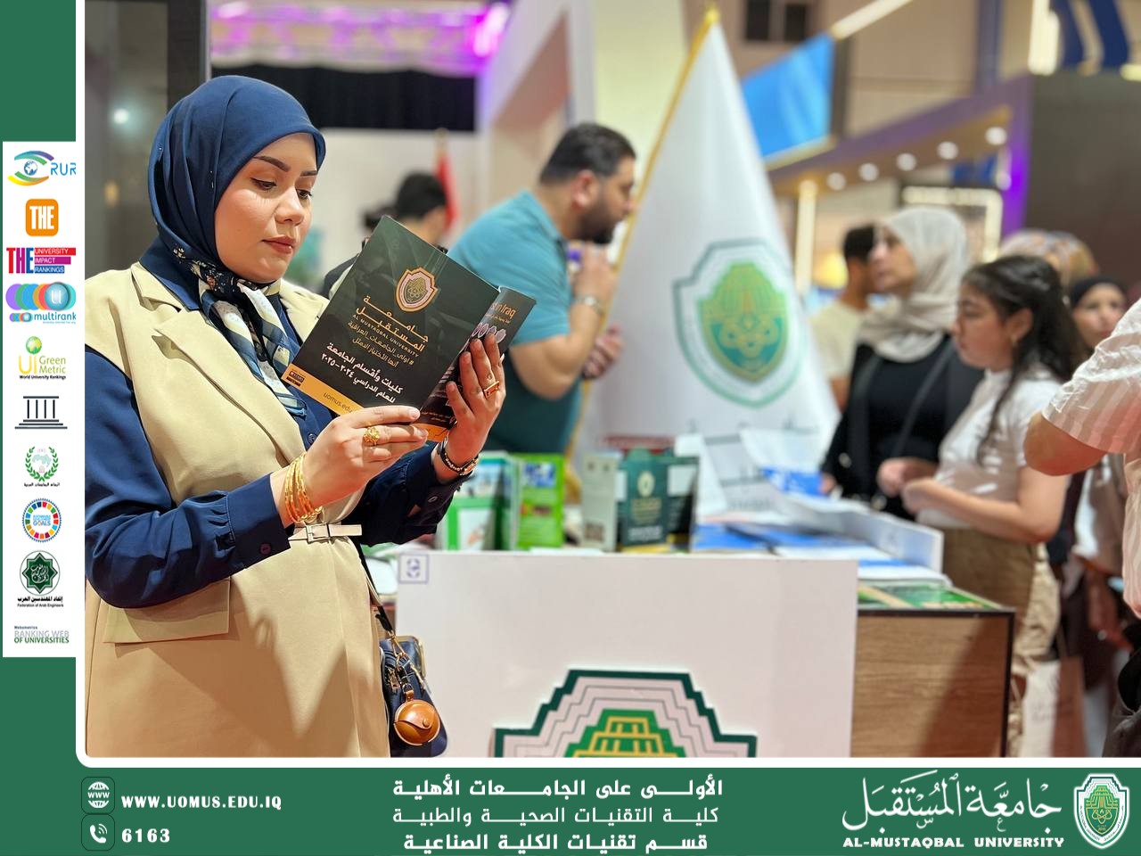 In line with the Sustainable Development Goals, particularly Goal 4: Ms. Zainab Ali Mohsen, Coordinator of the Department of Kidney Dialysis Technology at the College of Health and Medical Technologies - Al-Mustaqbal University, attended the Baghdad International Book Fair, representing the department.
