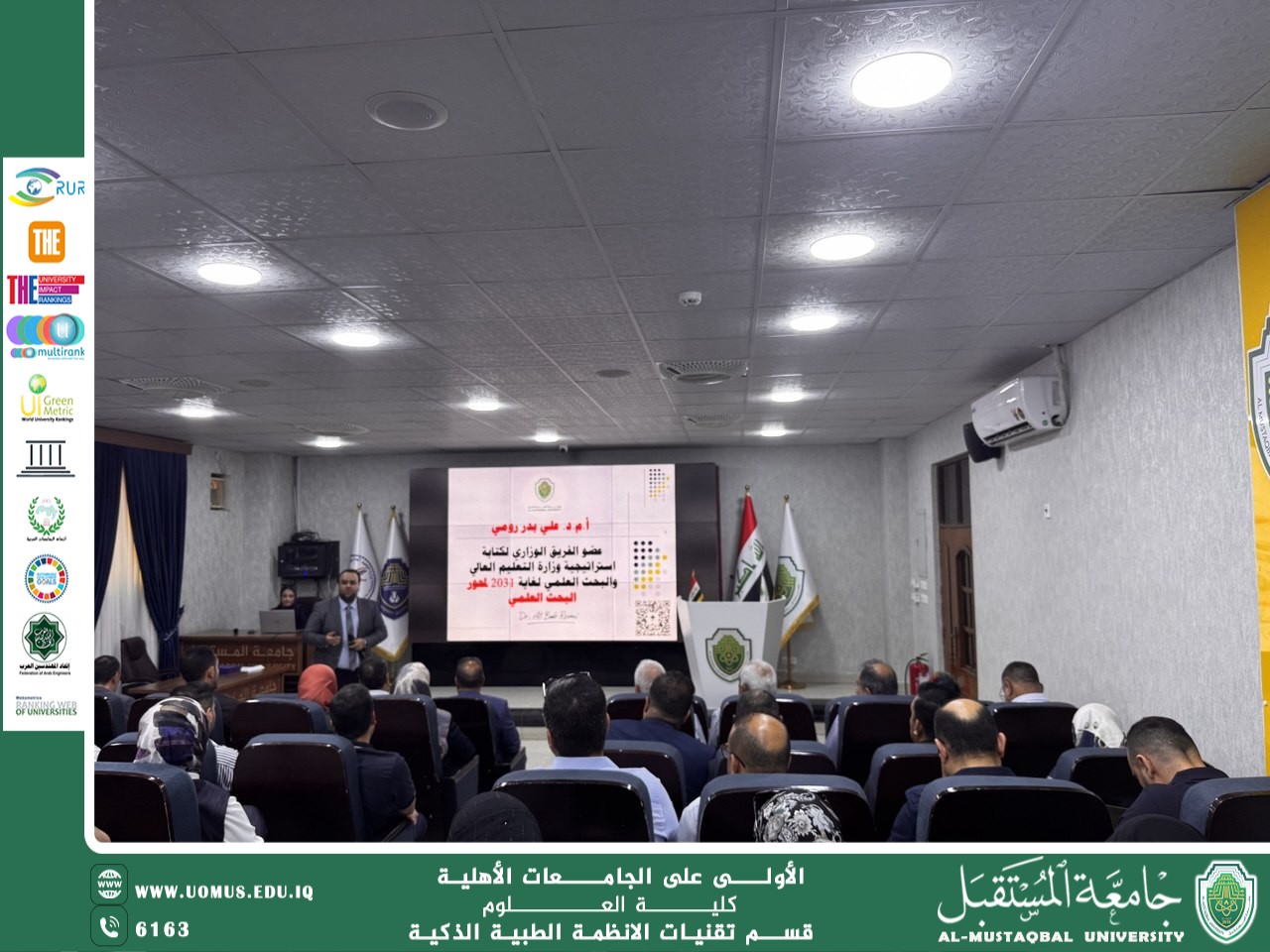 “From Vision to Leadership: Evaluating the Research Path and Global Rankings of Al-Mustaqbal University”, held on the morning of Tuesday, August 20, 2025.