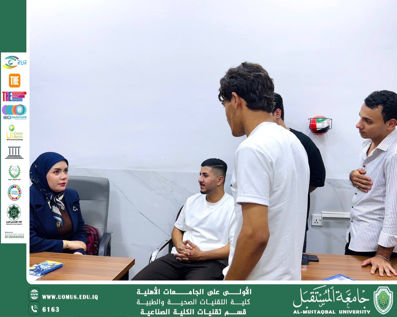In line with achieving the third goal of the Sustainable Development Goals (Good Health and Well-being), and under the directives of the College Dean, the Department of Industrial College Technologies held a meeting with the department’s students participating as Ambassadors of Sustainability, led by the department’s rapporteur, Asst. Lecturer Zainab Ali Mohsen Al-Khafaji.