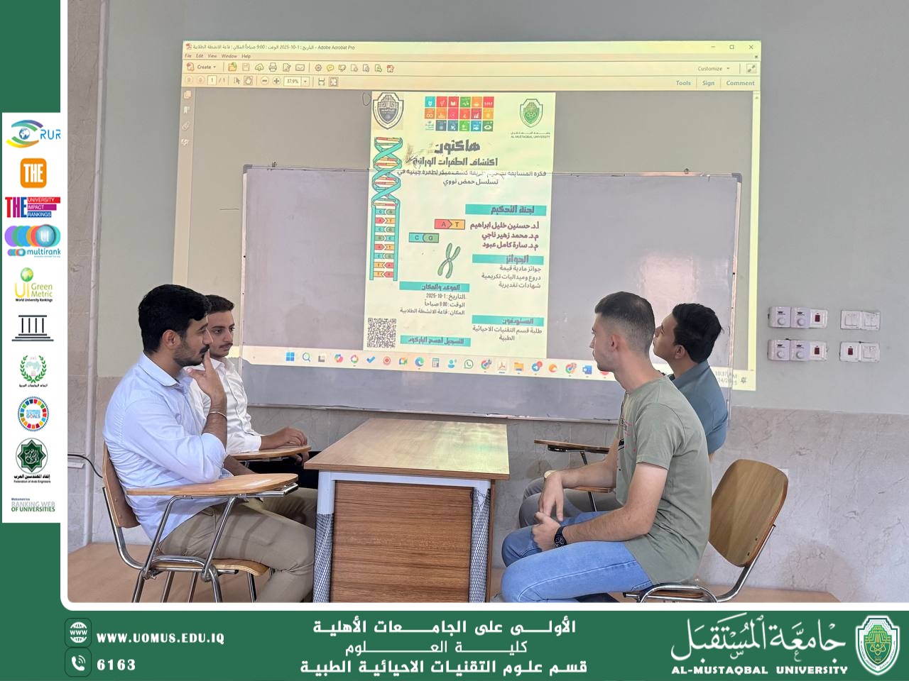As part of its commitment to supporting students and enhancing their scientific and research skills, the Department of Medical Biotechnology has begun its preparations for participation in the “Genetic Mutation Discovery” Hackathon.