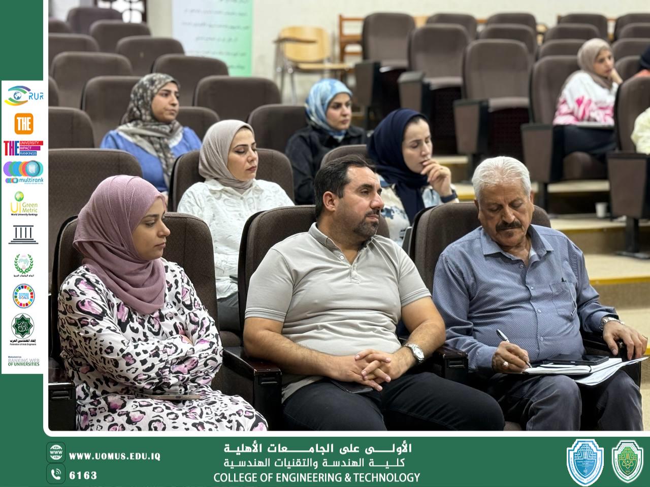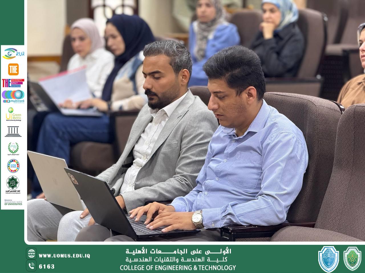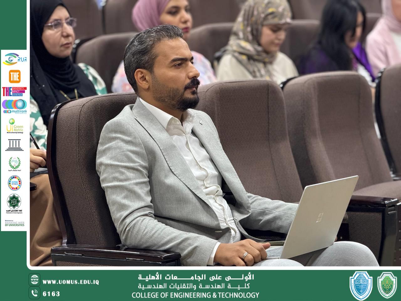 On Wednesday morning at 10:30 a.m., Assistant Professor Dr. Azhar Mohsen Abdul, Dean of the College of Engineering and Engineering Technologies at Al-Mustaqbal University, held a meeting with the representatives of scientific and student activities, the governmental program, and the college’s website from all departments.