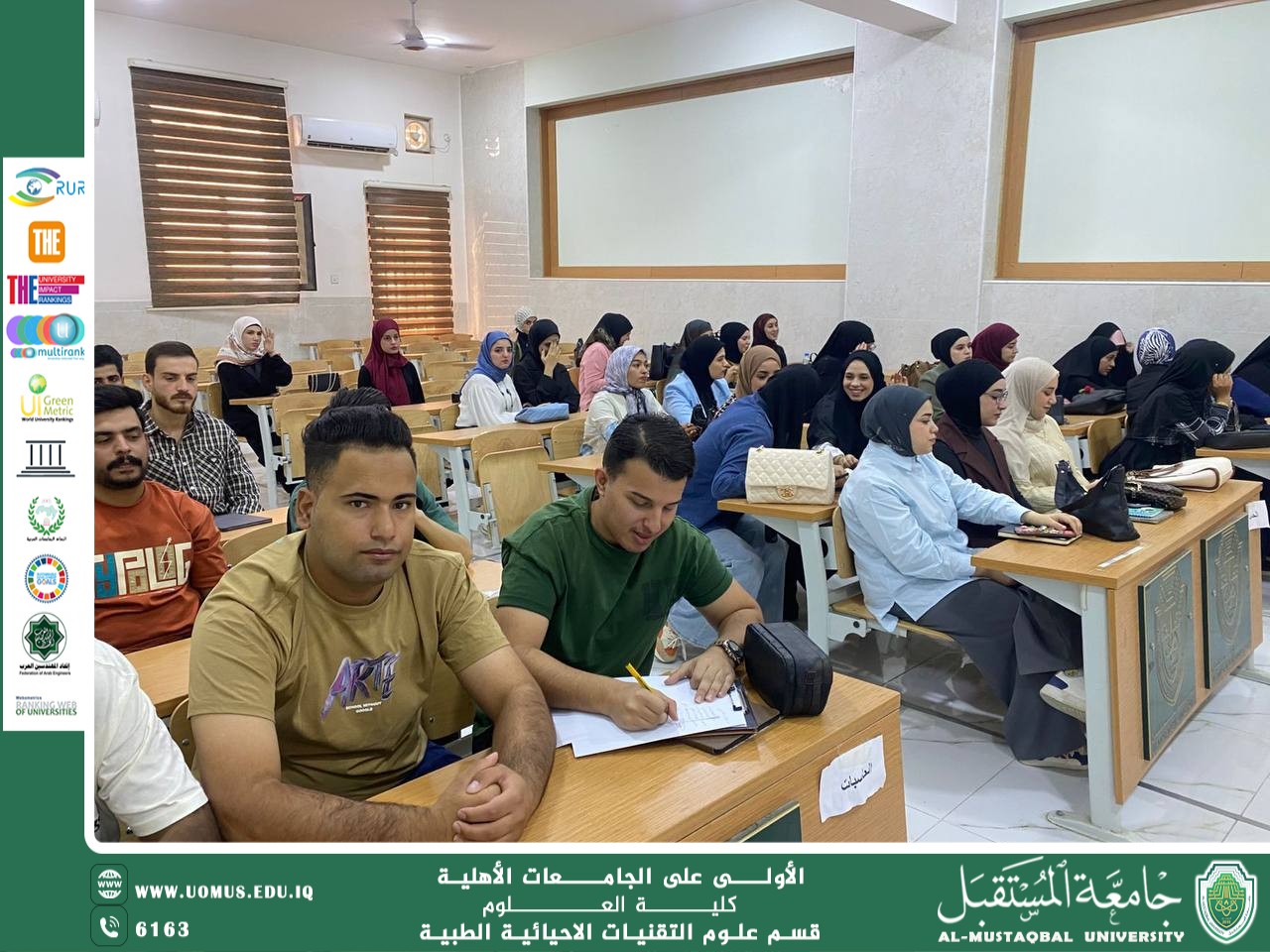 The theoretical lectures for the Molecular Biology course have officially commenced for second-year students in the Department of Medical Biotechnology. The lectures are delivered by Dr. Mohammed Zuheir Naji, covering fundamental concepts and modern applications in this vital field. This comes as part of the current semester’s academic plan, aiming to enhance students’ scientific knowledge and academic skills.