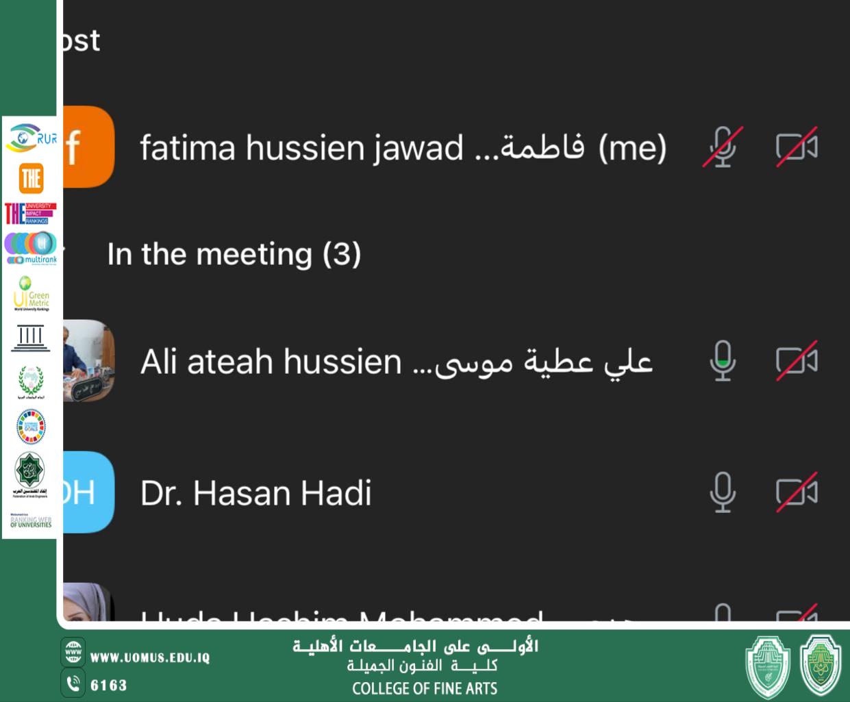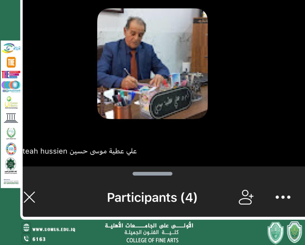 The College of Fine Arts at Al-Mustaqbal University organized an online workshop entitled “The Intellectual References of Islamic Architectural Elements”, delivered by Assistant Professor Dr. Ali Atiya Al-Saadi, the Scientific Assistant of the College, on Sunday, September 28, 2025, via Zoom. The workshop was attended by faculty members, staff, and students of the college’s two departments. It highlighted significant intellectual and aesthetic dimensions of Islamic architecture and its impact on the development of arts throughout history. Moreover, the workshop contributed to achieving Sustainable Development Goal 11: Sustainable Cities and Communities, by emphasizing the role of Islamic architecture in creating balanced urban spaces that preserve cultural identity and support the sustainability of cities.