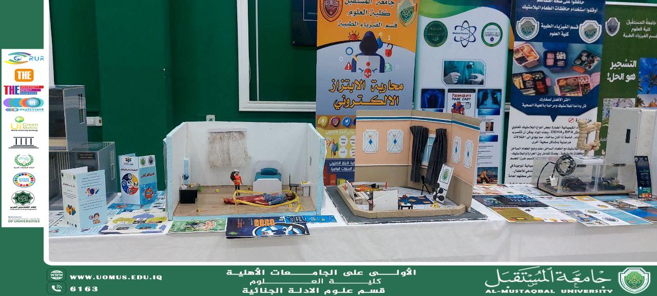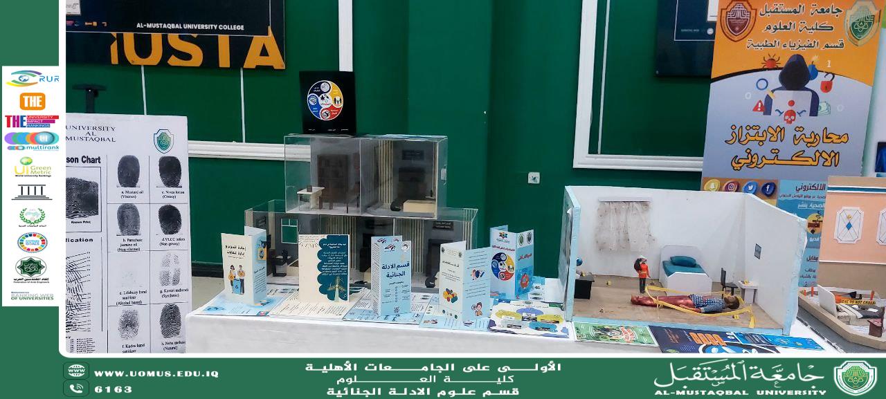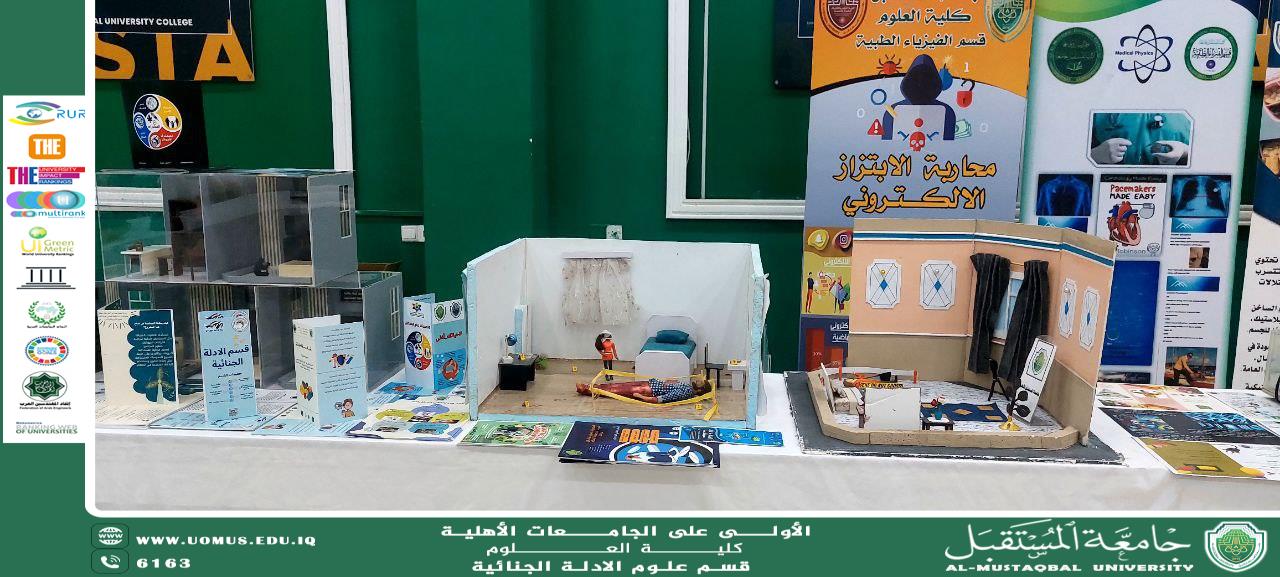 In line with the vision of Al-Mustaqbal University, the first university in Iraq, and under the patronage of the respected University President, Prof. Dr. Hassan Shaker Majdi, with the direct supervision of the Dean of the College of Science, Asst. Prof. Dr. Furat Hamza Al-Sultani, and the Head of the Forensic Evidence Department, Prof. Dr. Sami Abdul Hussein Habana, the special corner of the Forensic Evidence Department has been prepared in anticipation of the Honoring Ceremony for Top Students and Sustainability Ambassadors, to be held on Saturday, October 4, 2025.