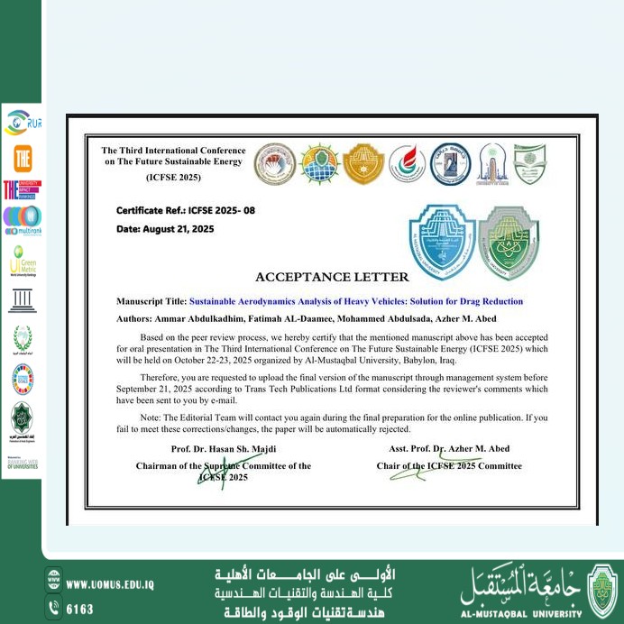 Acceptance of Research Paper at the 3rd International Conference on the Al-Mustaqbal of Sustainable ...