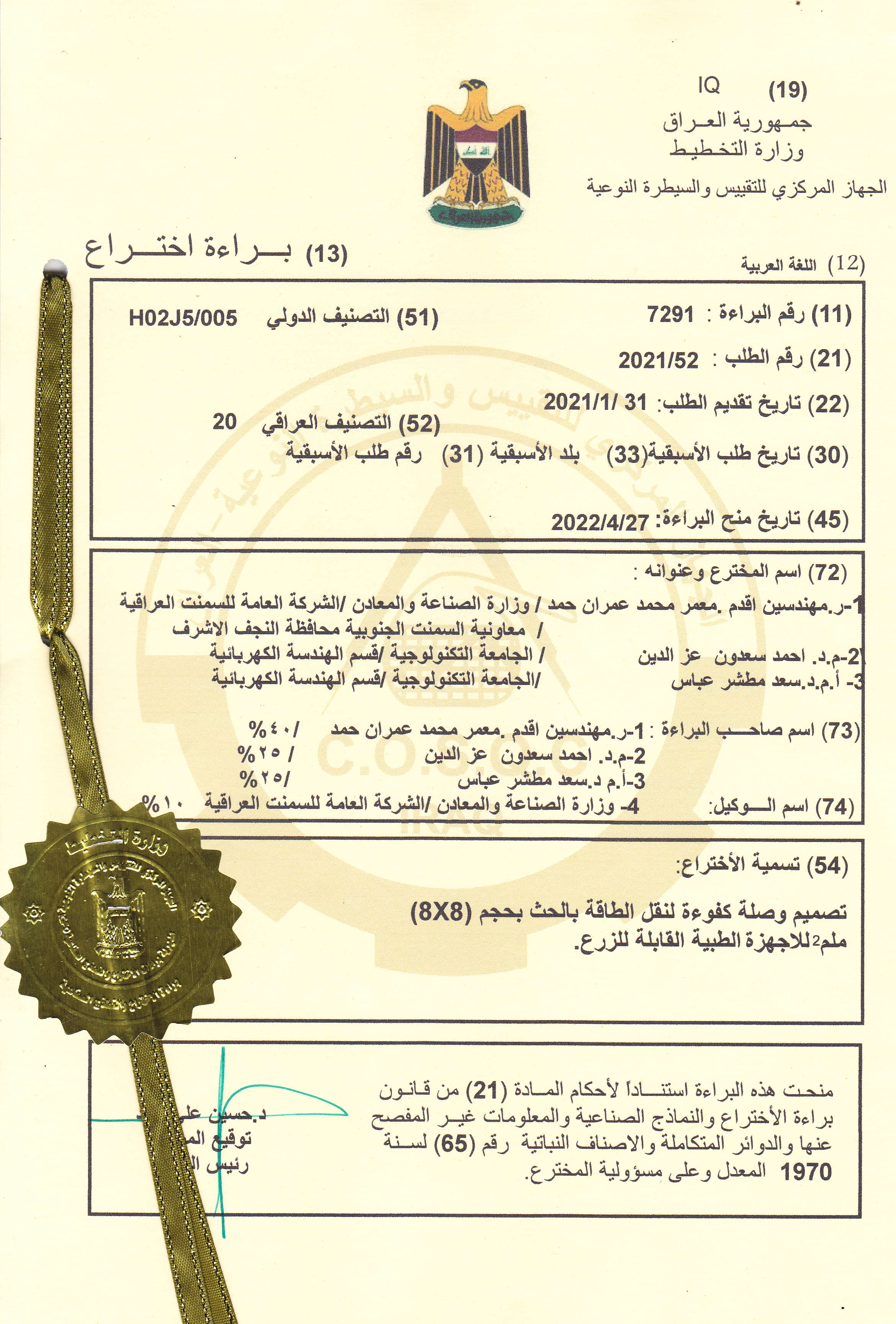 تصميم وصلة كفوءة لنقل الطاقة بالحث بحجم (8*8) ملم2 للاجهزة الطبية القابلة للزرع.