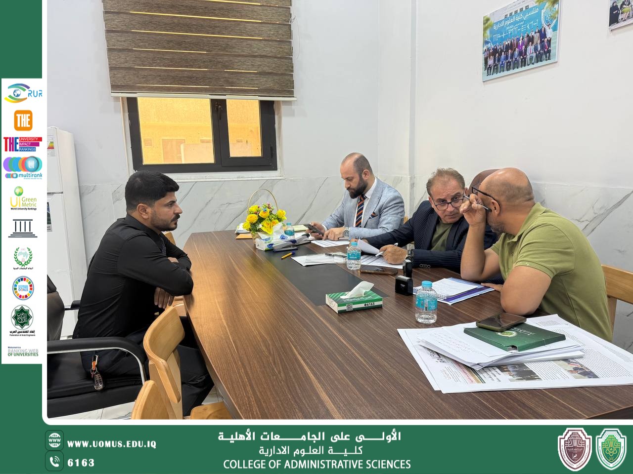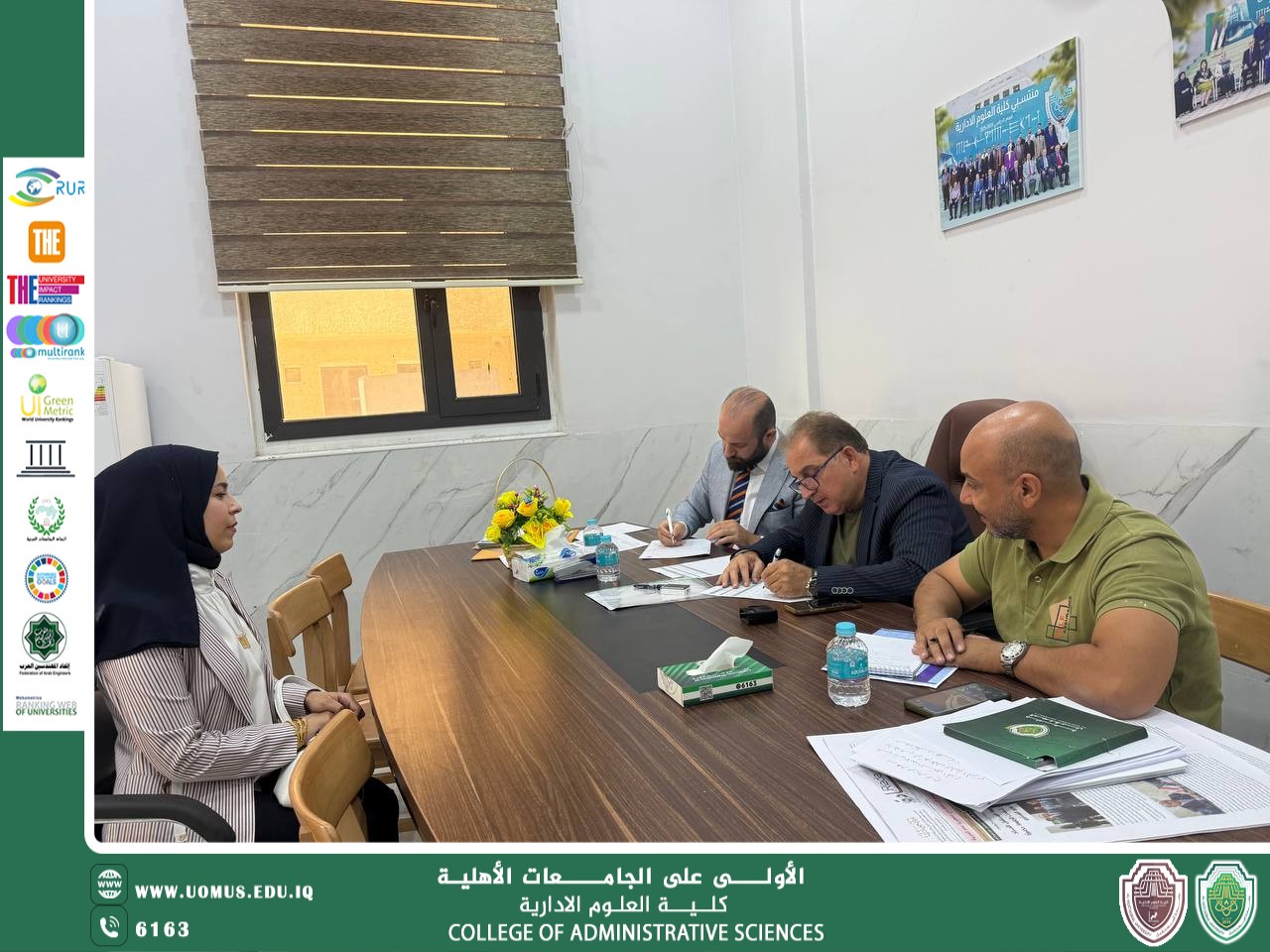 Professor Dr. Haider Ali Al-Dulaimi, Dean of the College of Administrative Sciences, chaired the specialized committee responsible for appointing postgraduate degree holders (Ph.D. and Master’s) to the university staff for the academic year 2025–2026.