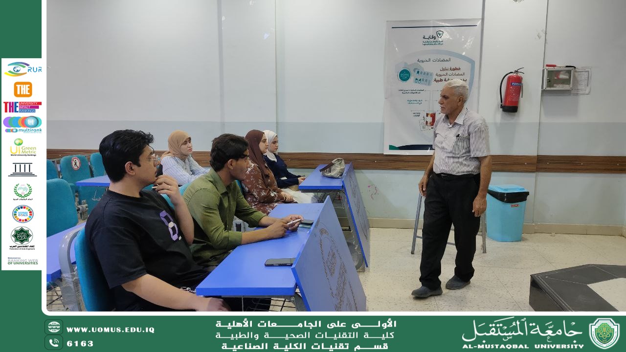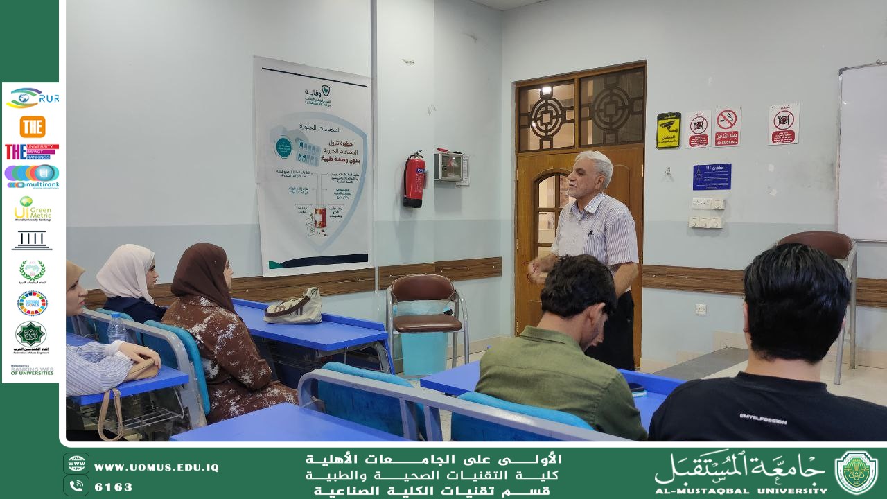 In line with efforts to achieve the Sustainable Development Goals, particularly Goal 4 Quality Education, and as part of the community service activities, the Head of the Department of Kidney Dialysis Technologies, Professor Dr. Younis Abd Al-Ridha Al-Khafaji, conducted an orientation workshop for the department’s students. The workshop aimed to provide practical guidance and instructions to help students organize their time, follow their lectures, and make the most of available educational resources.