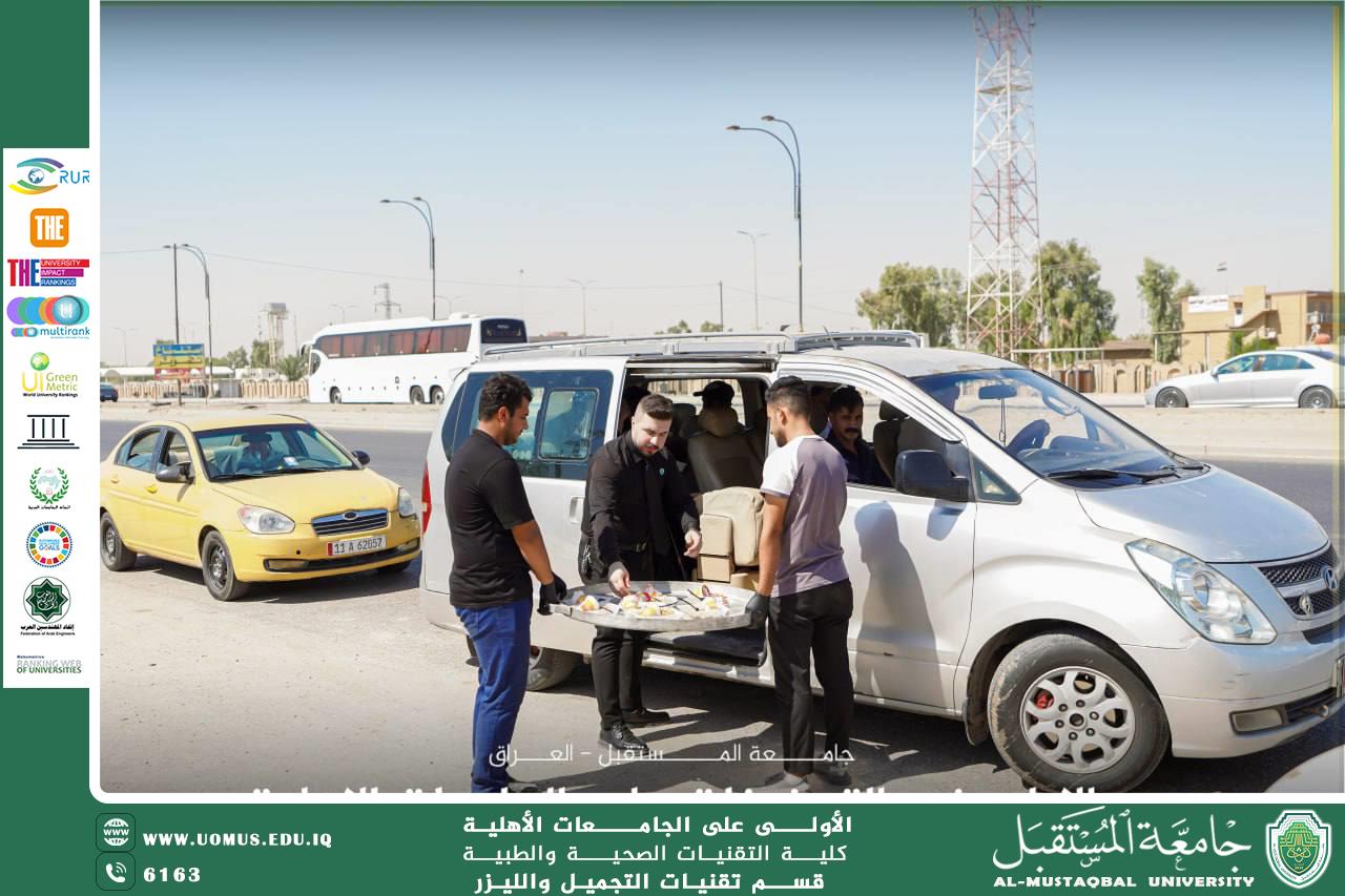 As part of its social role, Al-Mustaqbal University continued its annual tradition of serving the pilgrims arriving in Najaf Al-Ashraf, by distributing food, water, and essential services—strengthening the spirit of solidarity and embodying the message of genuine Muhammadan Islam in serving people.