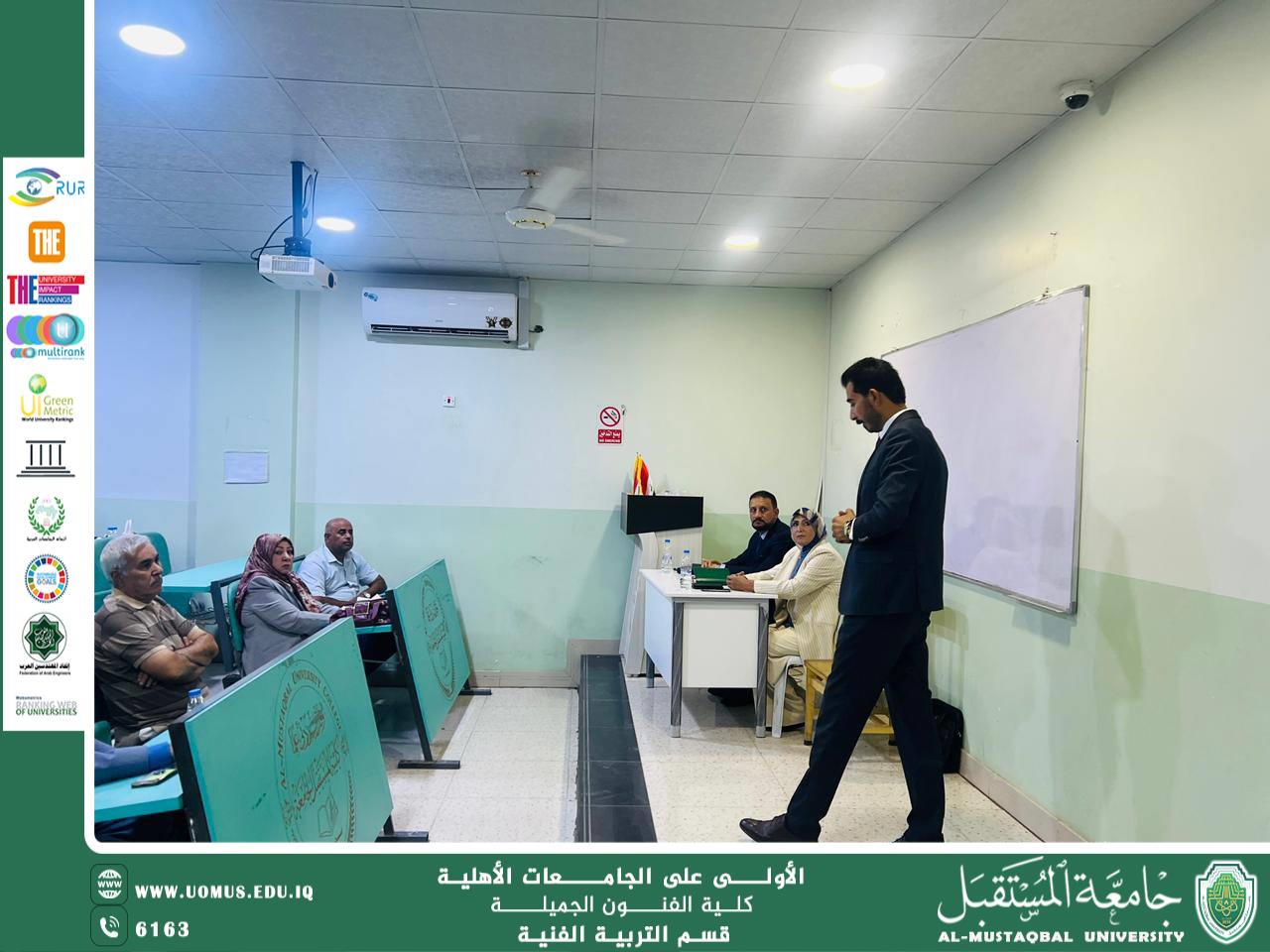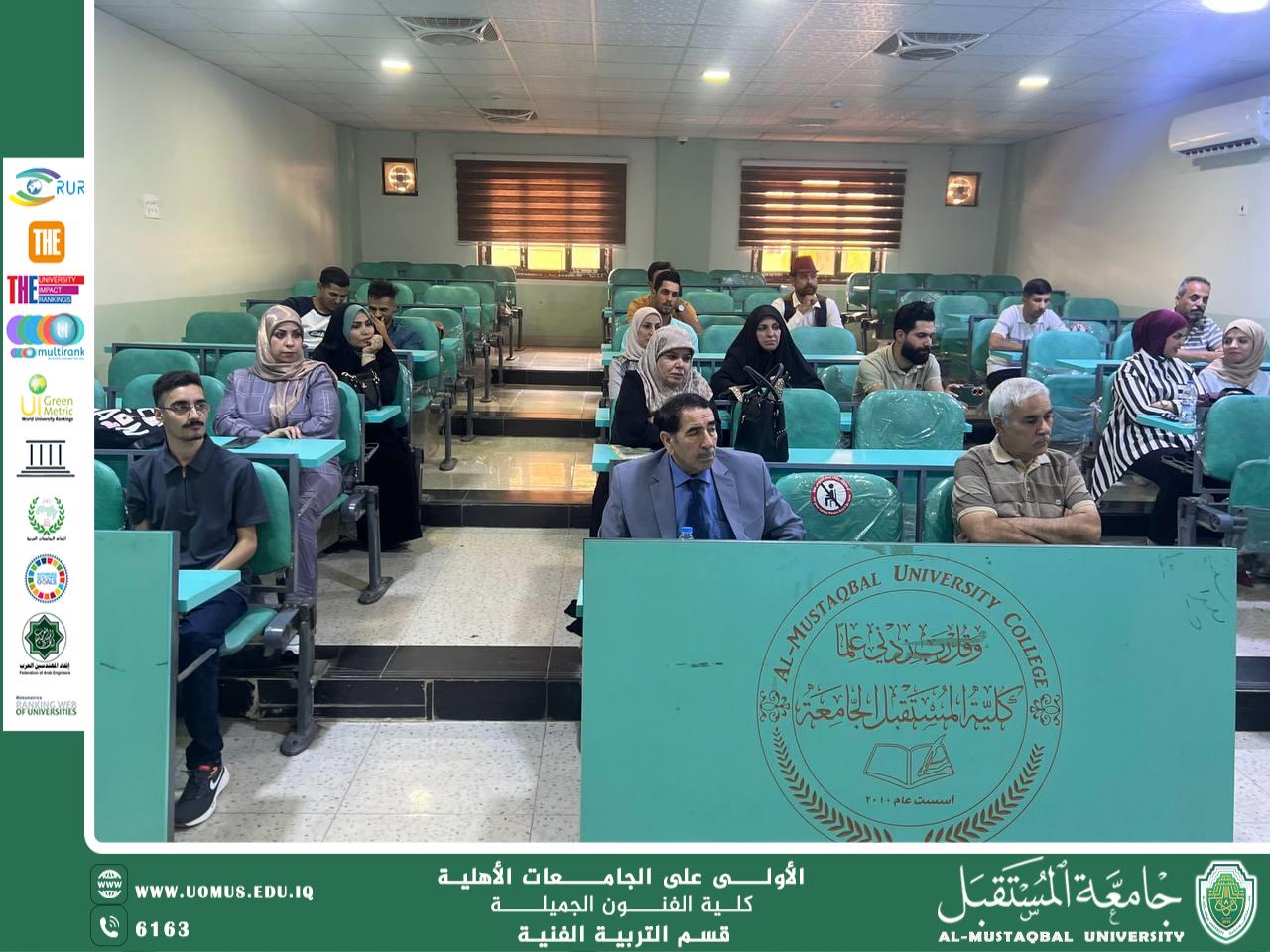 Almustaqbal University continues its efforts to raise community awareness and consolidate the values of tolerance and civil peace by organizing an in-person workshop titled "The Role of Women in Combating Extremism" at the Faculty of Fine Arts. The workshop will be held next Saturday at 10:00 AM in the Activities Hall of the faculty.