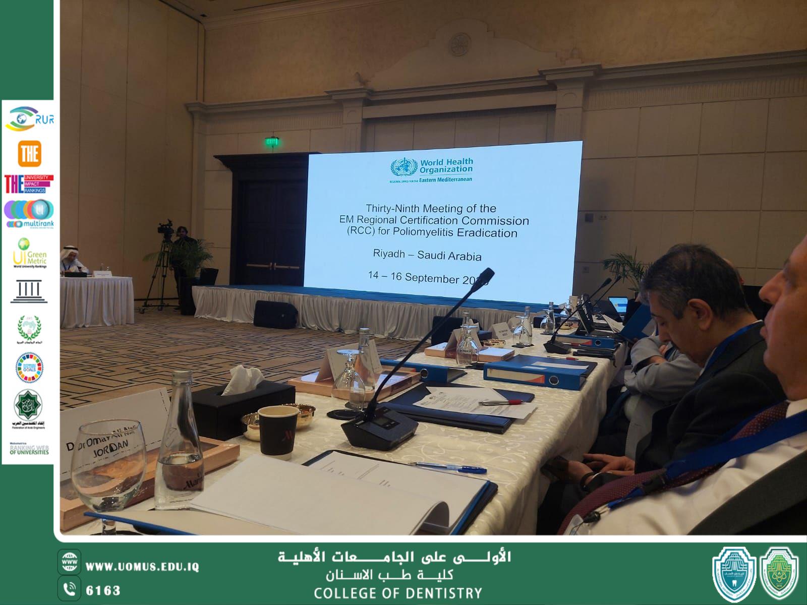 Professor Dr. Saad Hassan Mohammed Ali, faculty member at the College of Dentistry – Al-Mustaqbal University and Chair of the National Certification Committee at the Ministry of Higher Education and Scientific Research, took part in the 39th meeting of the Regional Certification Committee of the World Health Organization (WHO), Regional Office for the Eastern Mediterranean and North Africa. The meeting was held in Riyadh, Saudi Arabia, from September 14 to 16, 2025, with the participation of official delegations from member states.