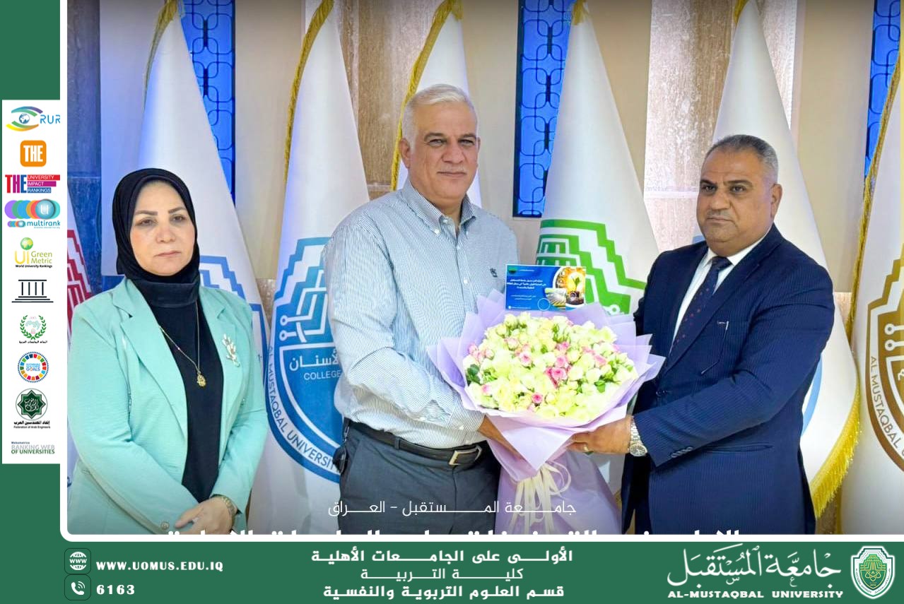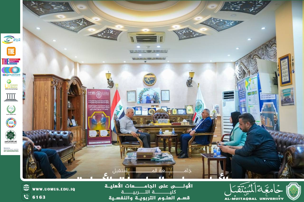 A delegation from the Ministry of Industry and Minerals, headed by Engineer Jumaa Al-Bahadli, the Ministry's Technical Undersecretary, congratulated AL_Mustaqbal University in Babylon on its global achievement of being ranked first globally in the seventh Sustainable Development Goal (Affordable and Clean Energy) according to the Times Higher Education University Impact Rankings 2025.