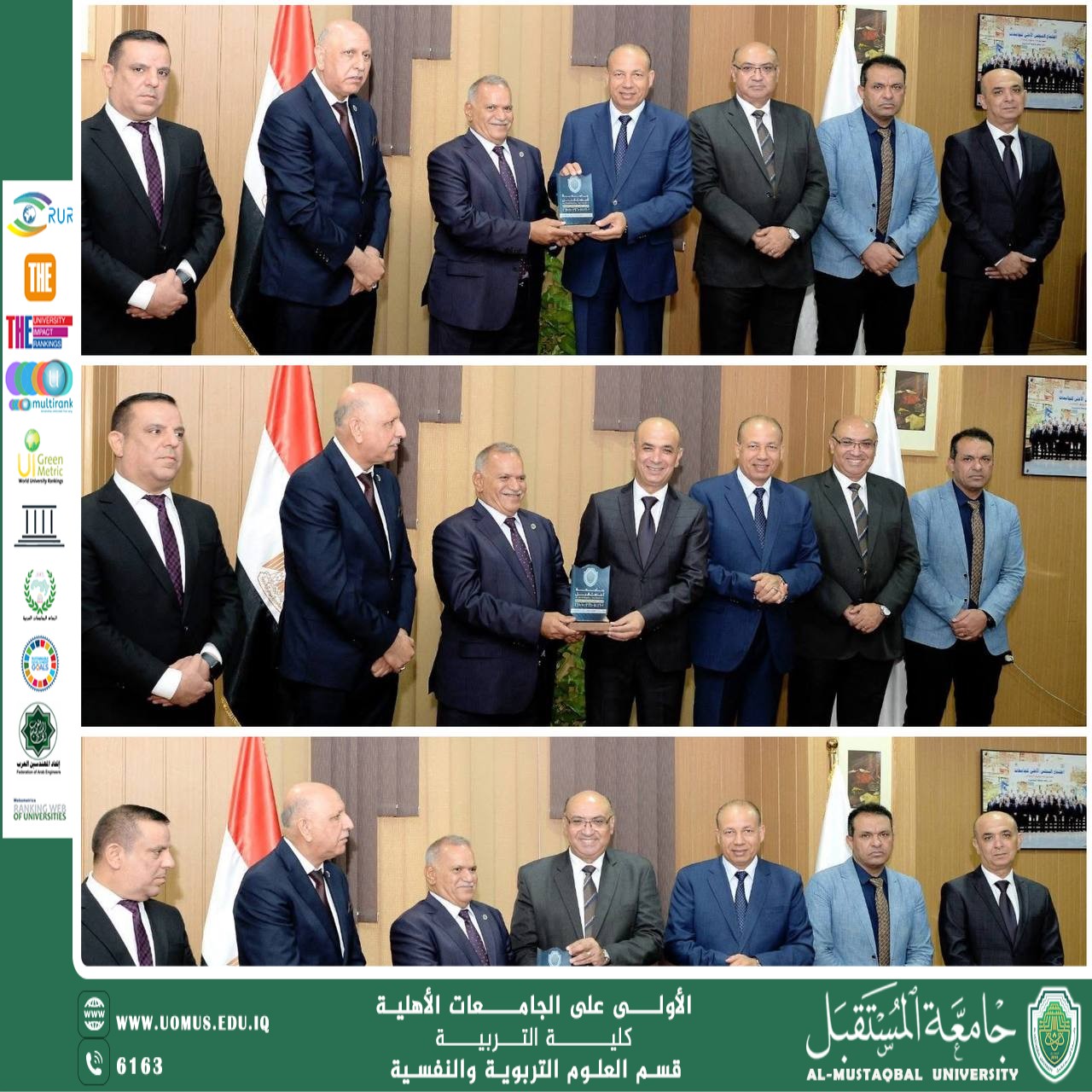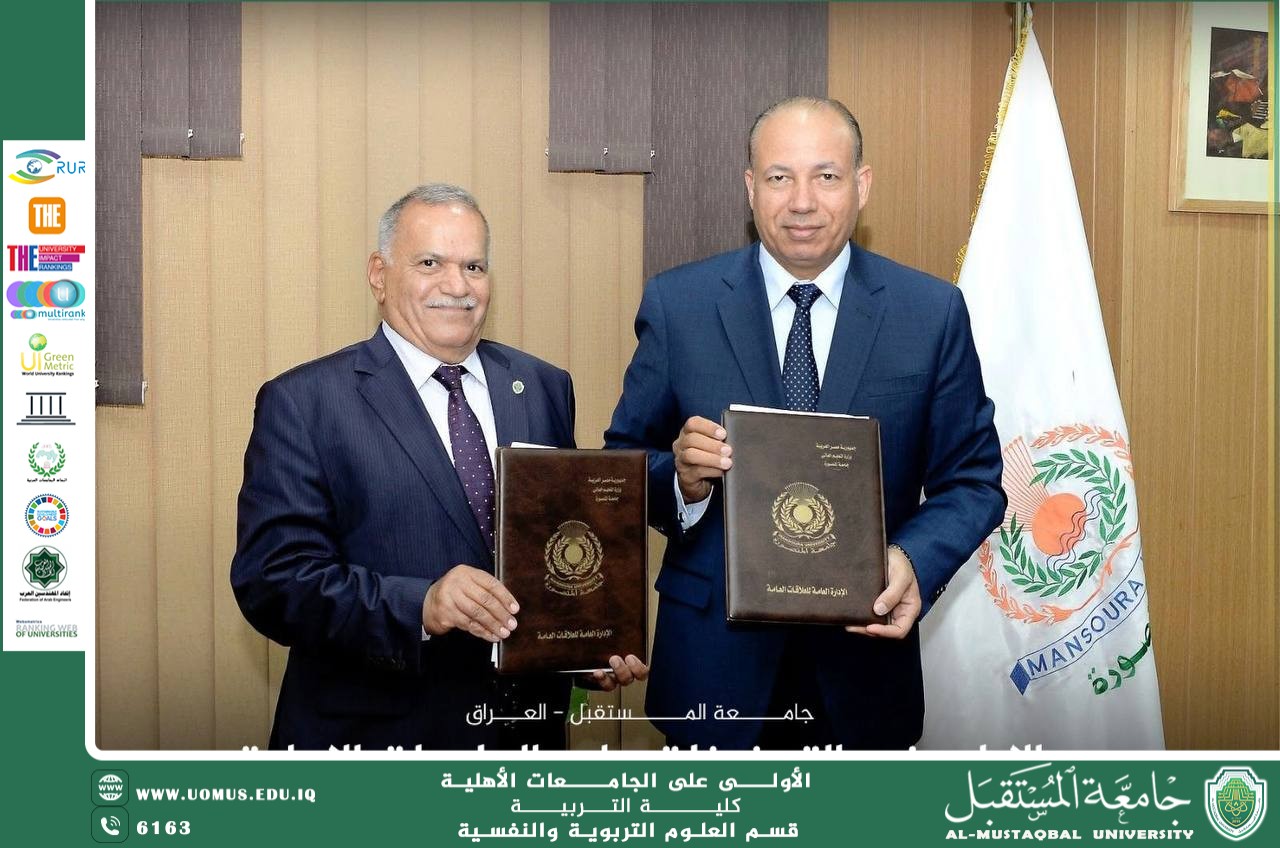 This agreement embodies the University of theAL_Mustaqbal vision of academic leadership and international openness, consolidating its position as a leading academic institution in Iraq, contributing to the development of a generation of researchers and students capable of keeping pace with global developments and actively participating in community service and sustainable development.