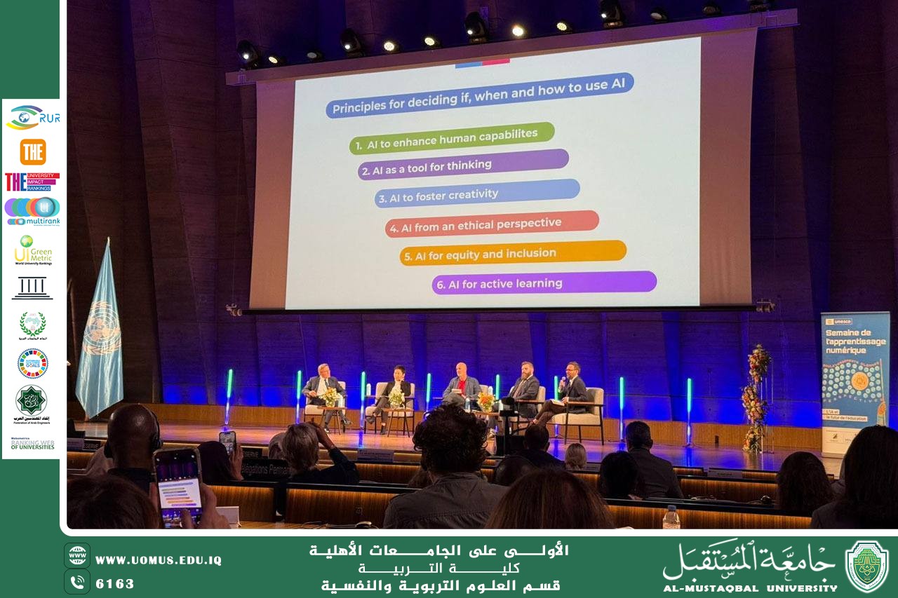 As part of its efforts to enhance its academic and research presence on the international scene, AL_Mustaqbal University participated in the "Digital Learning Week," organized by the United Nations Educational, Scientific and Cultural Organization (UNESCO) at its headquarters in Paris, France, from September 2 to 5, 2025, under the theme: