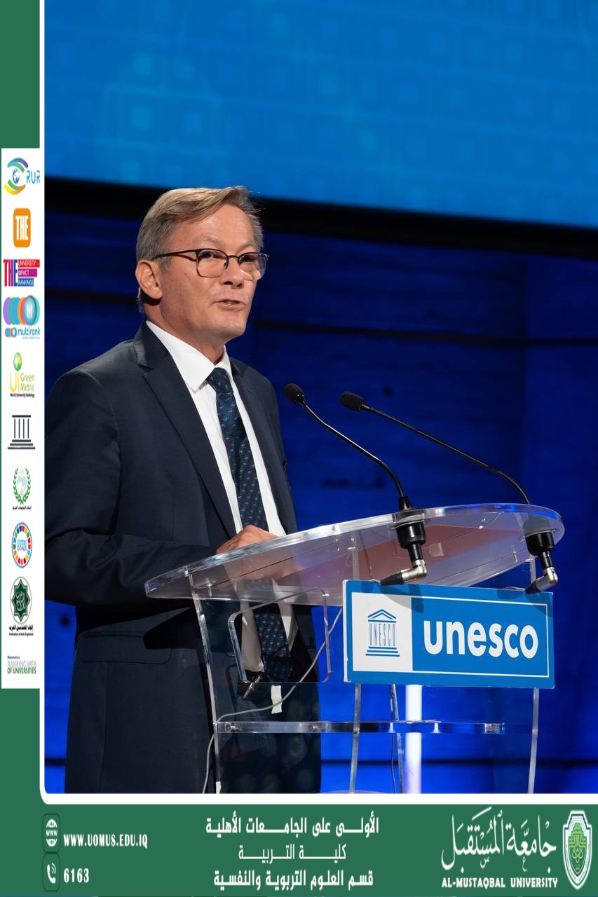 The university was represented at this global event by Professor Hassan Shaker Magdy, President of AL_Mustaqbal University, along with a group of ministers of education, decision-makers, academics, and international experts in the fields of education and artificial intelligence. The main session was opened by Ms. Stefania Giannini, Assistant Director-General for Education at UNESCO; Mr. Tomas Lamanauskas, Deputy Secretary-General of the International Telecommunication Union; and Mr. Thomas Davin, Director of the Office for Innovation at UNICEF.
