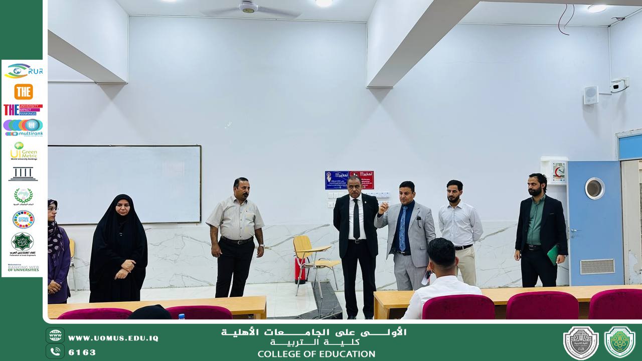 Prof. Dr. Ahmed Roudhan, Dean of the College of Education at the University of Al-Mustaqbal, conducted an inspection tour of the classrooms this morning as the new academic year 2025–2026 commenced, to review their readiness and ensure the smooth progress of the educational process from day one.