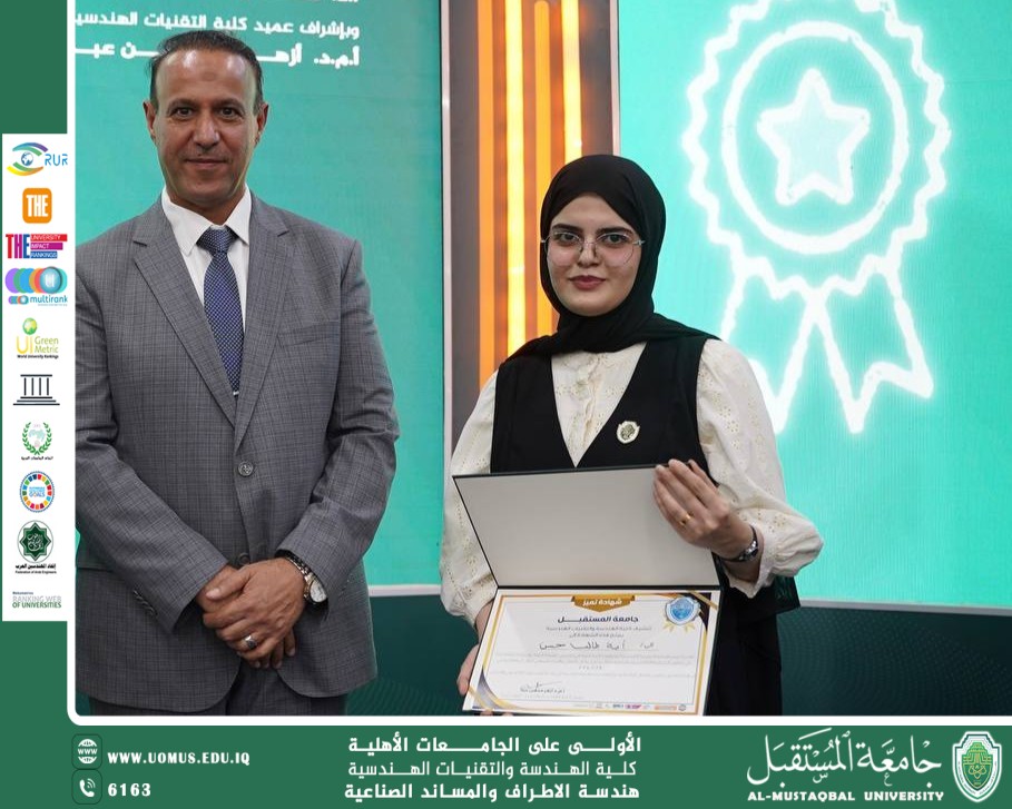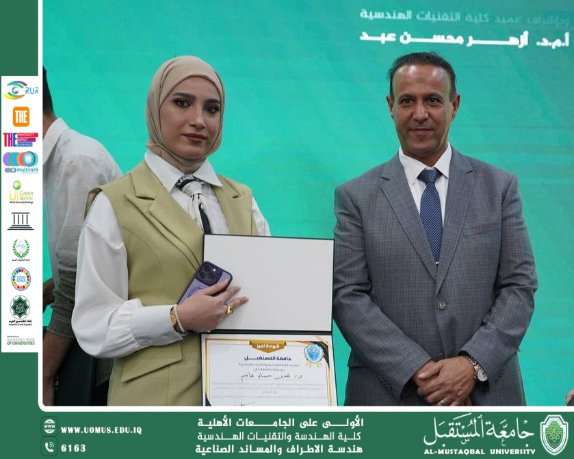 The College of Engineering at Al-Mustaqbal University honored Engineer Aya Talib Hassan in appreciat...