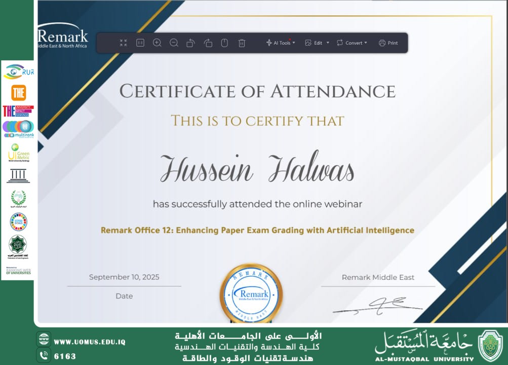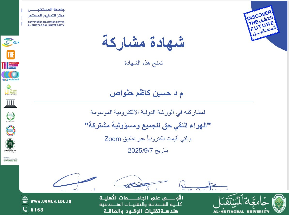 Dr. Hussein Halwas, Lecturer at Al-Mustaqbal University, Participates in International Webinar on En...