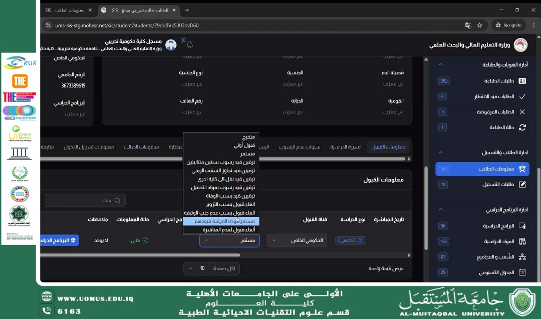 Under the patronage of the President of Al-Mustaqbal University, Prof. Dr. Hassan Shakir Majdi, and ...