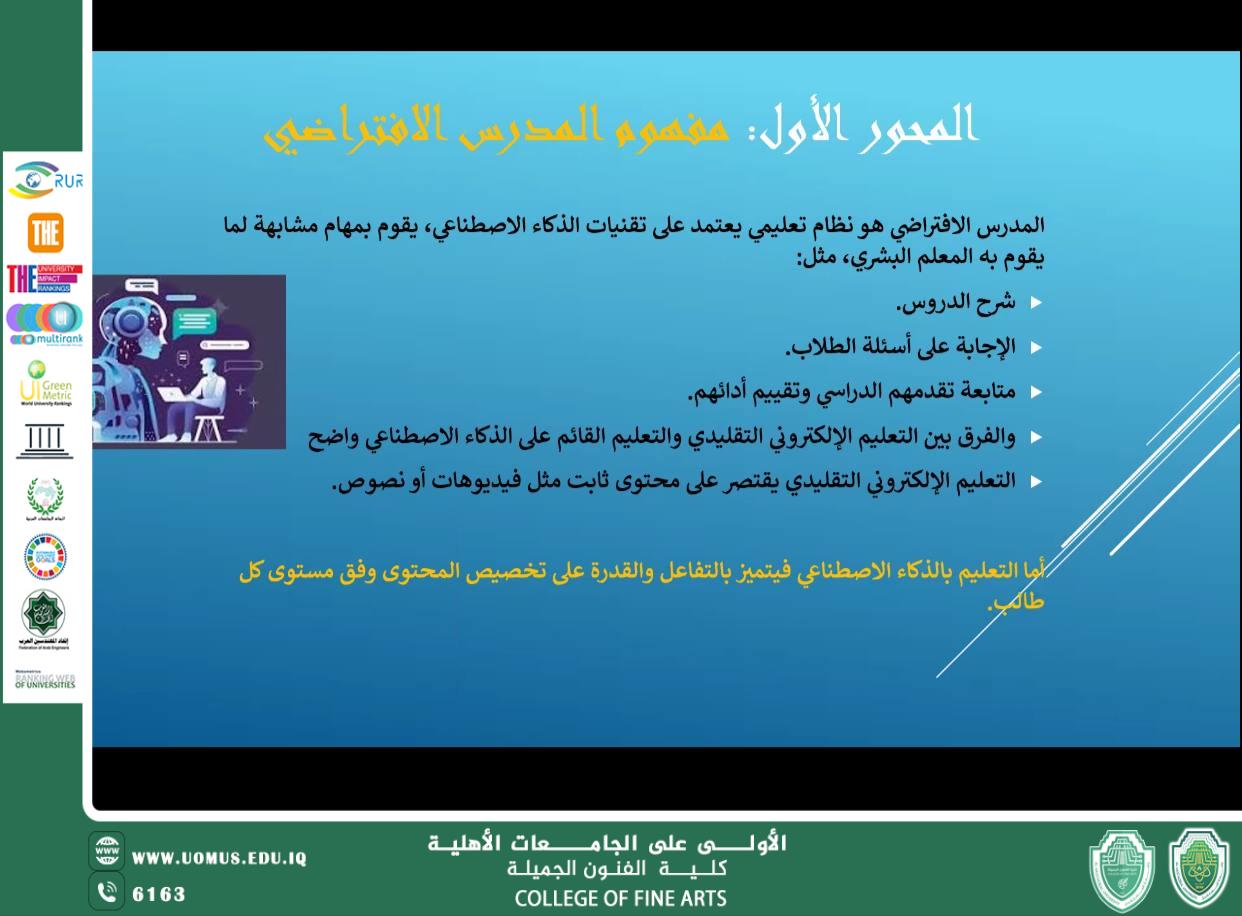 The College of Fine Arts at Al-Mustaqbal University organized an online workshop entitled “The Intel...