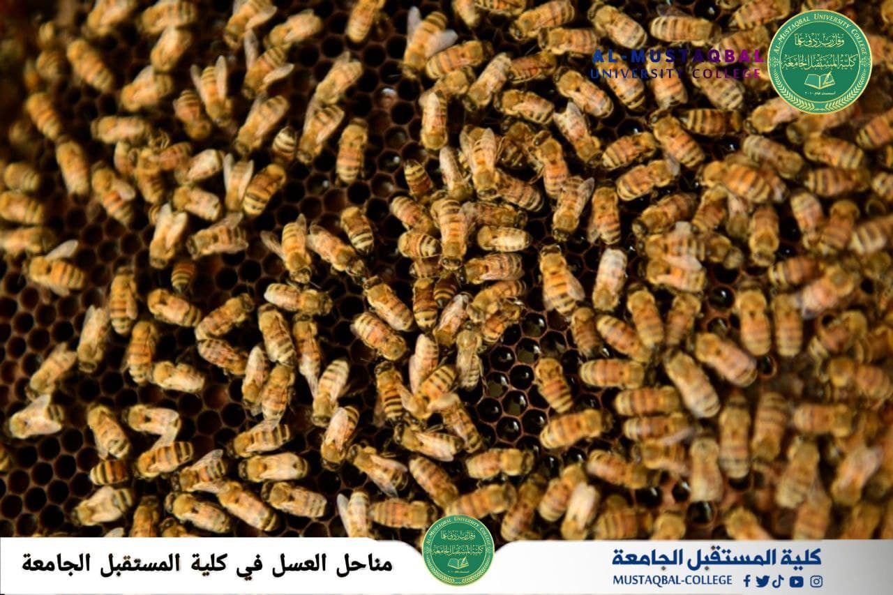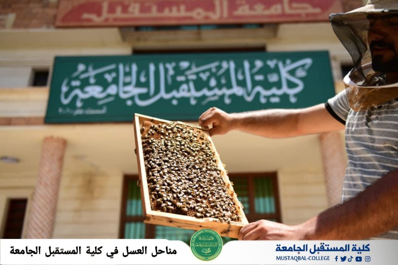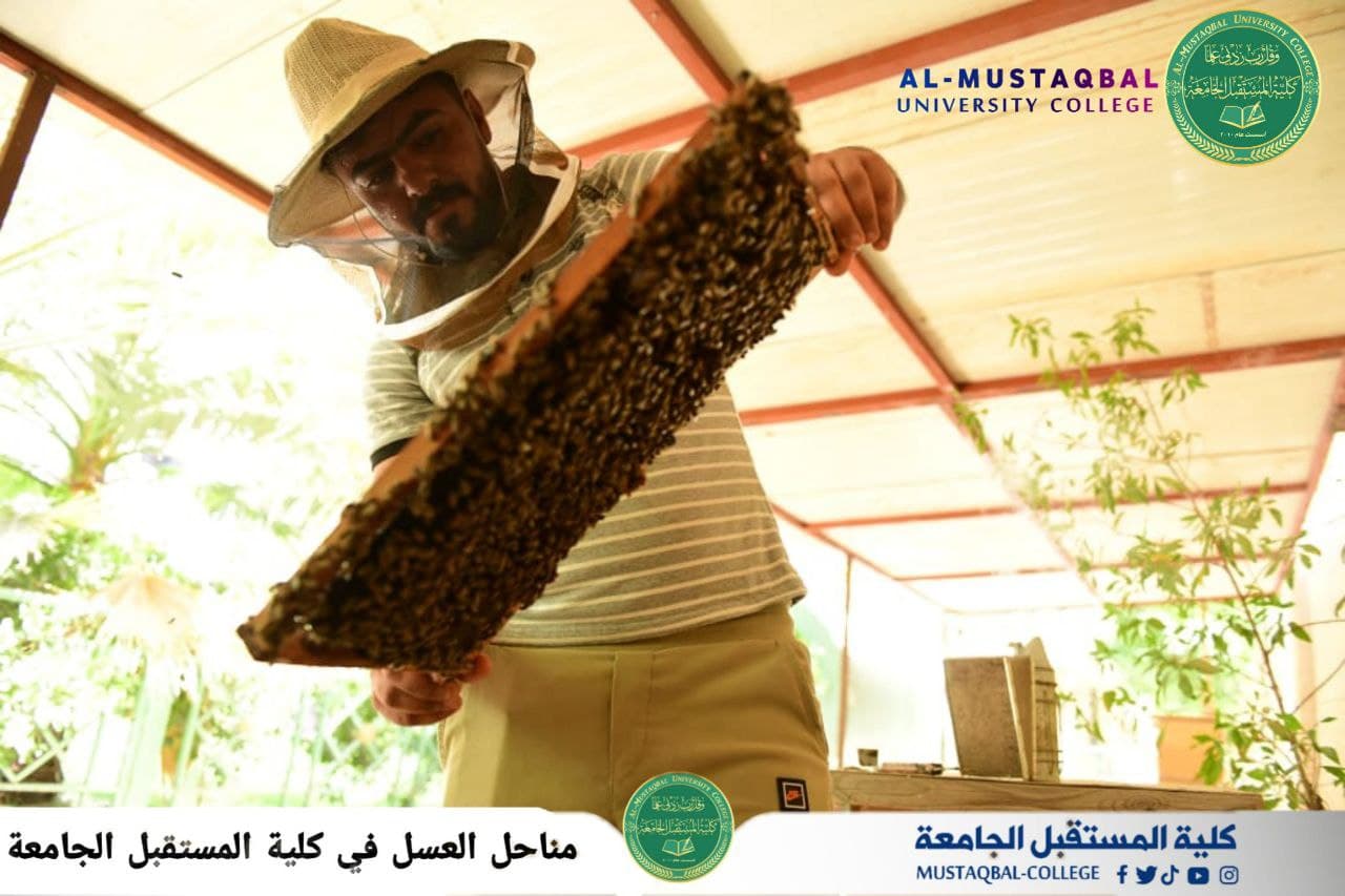 From here came the interest of Al-Mustaqbal University College in beekeeping and through the establishment of a number of apiaries for beekeeping, and the importance of beekeeping does not hide us, as the benefits of bees are varied, including food and healing, and the benefits of bees do not stop in the honey that they produce, but also beeswax can be used and used In pollination of flowers and their importance in making honey that cures diseases, and this is what the Holy Quran referred to in the Almighty saying: